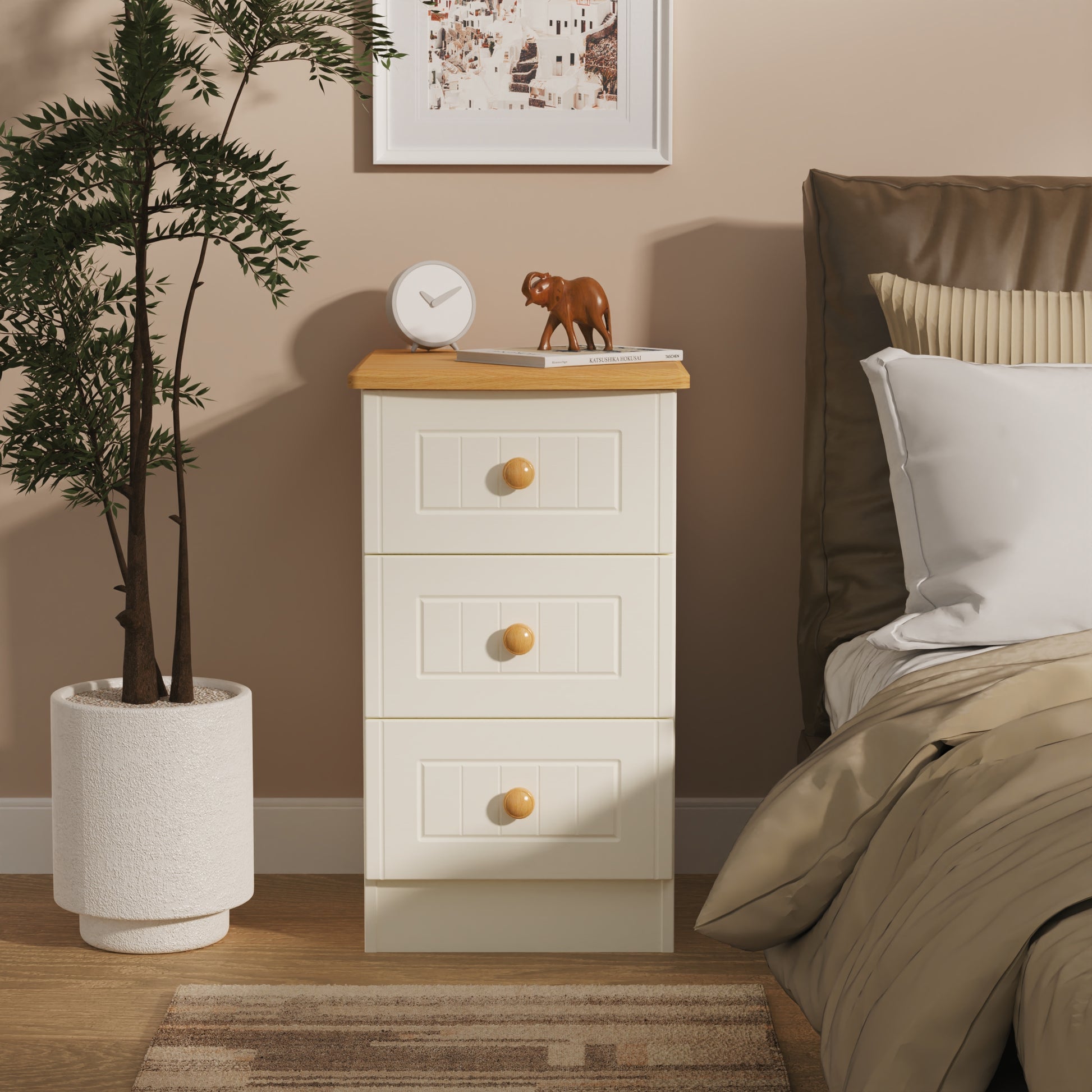 Warwick Bedside Table Cream & Oak 3 Drawers 40cm