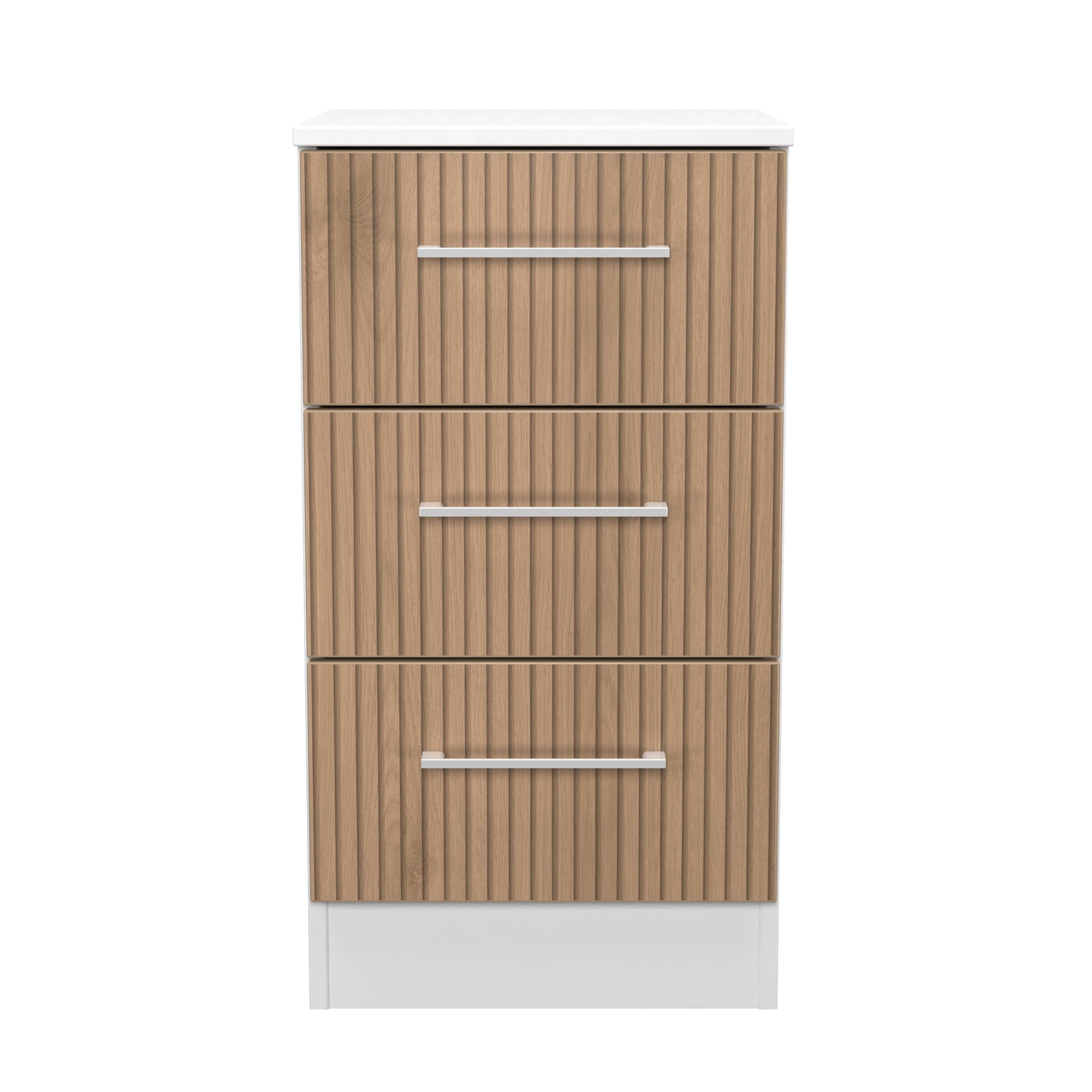 Worcester Bedside Table White & Light Oak 3 Drawers 37cm