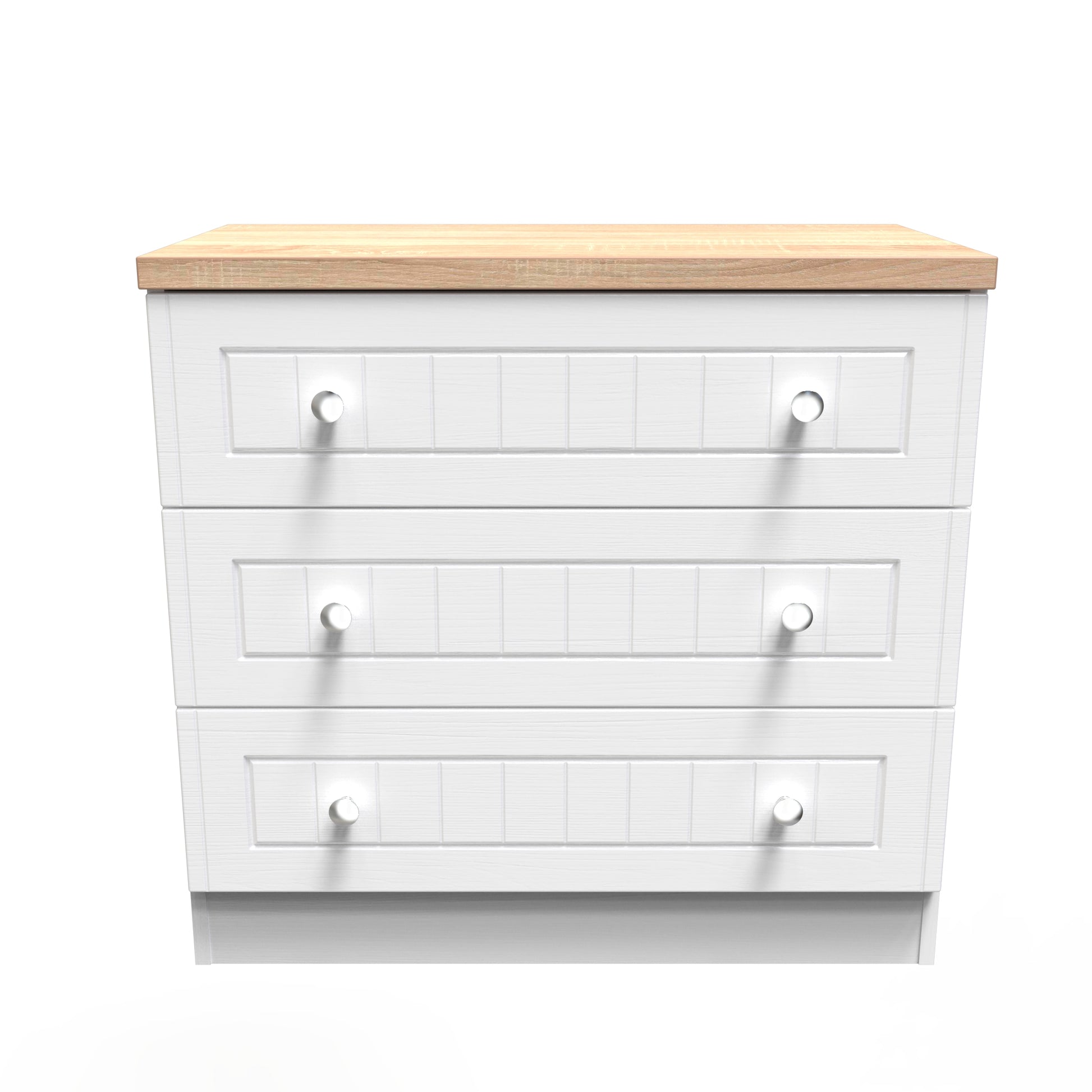 Vienna Chest of Drawers White & Light Oak 3 Drawers 74cm