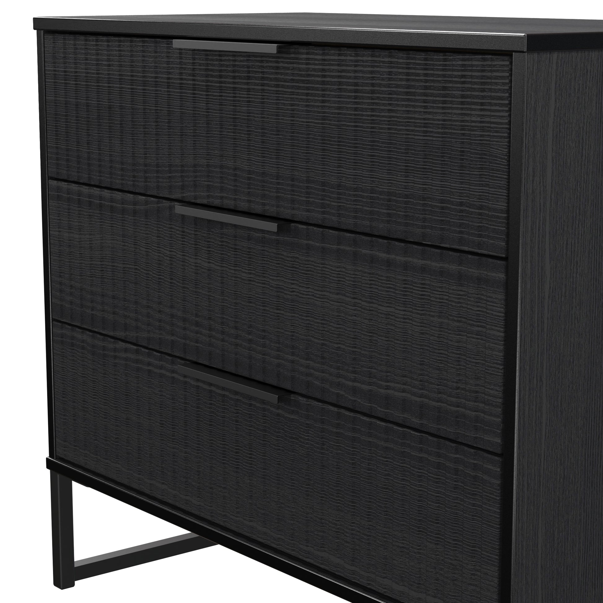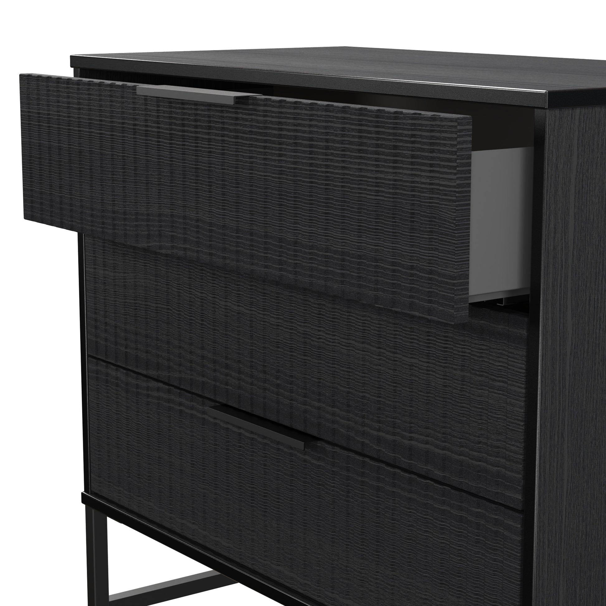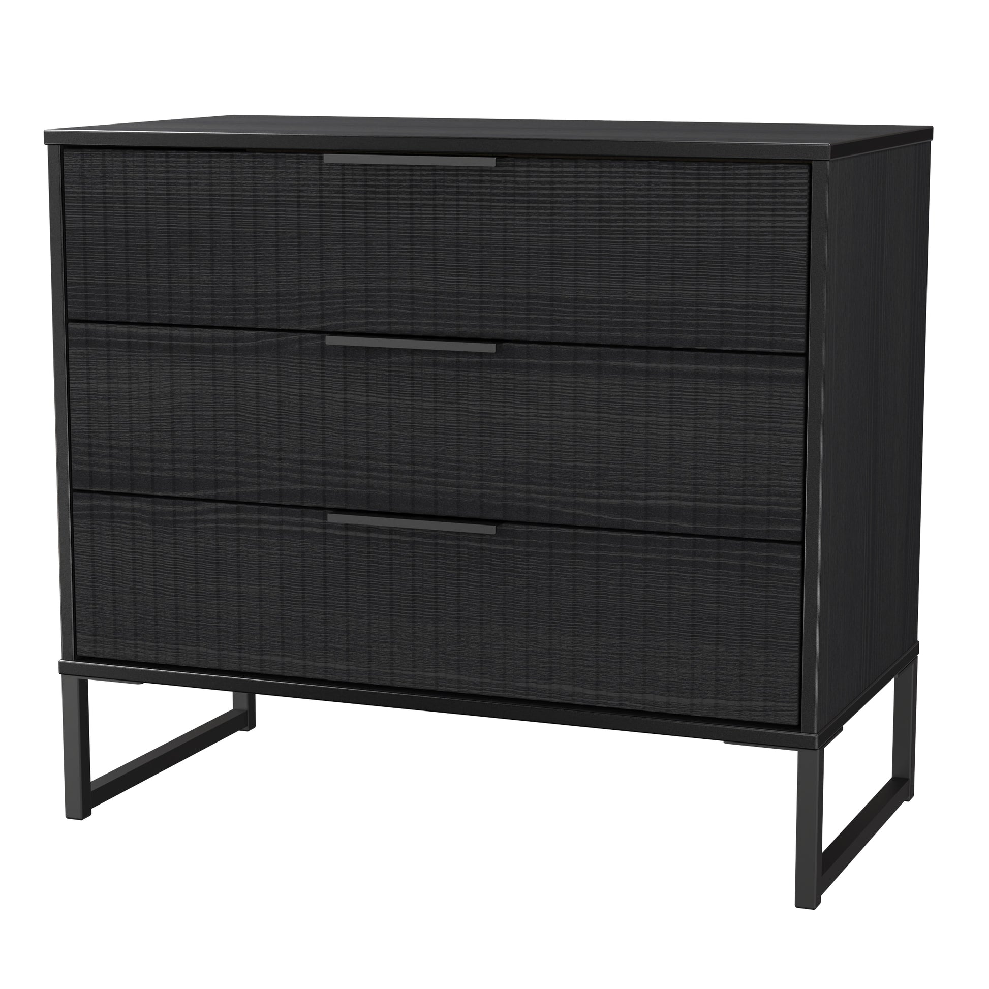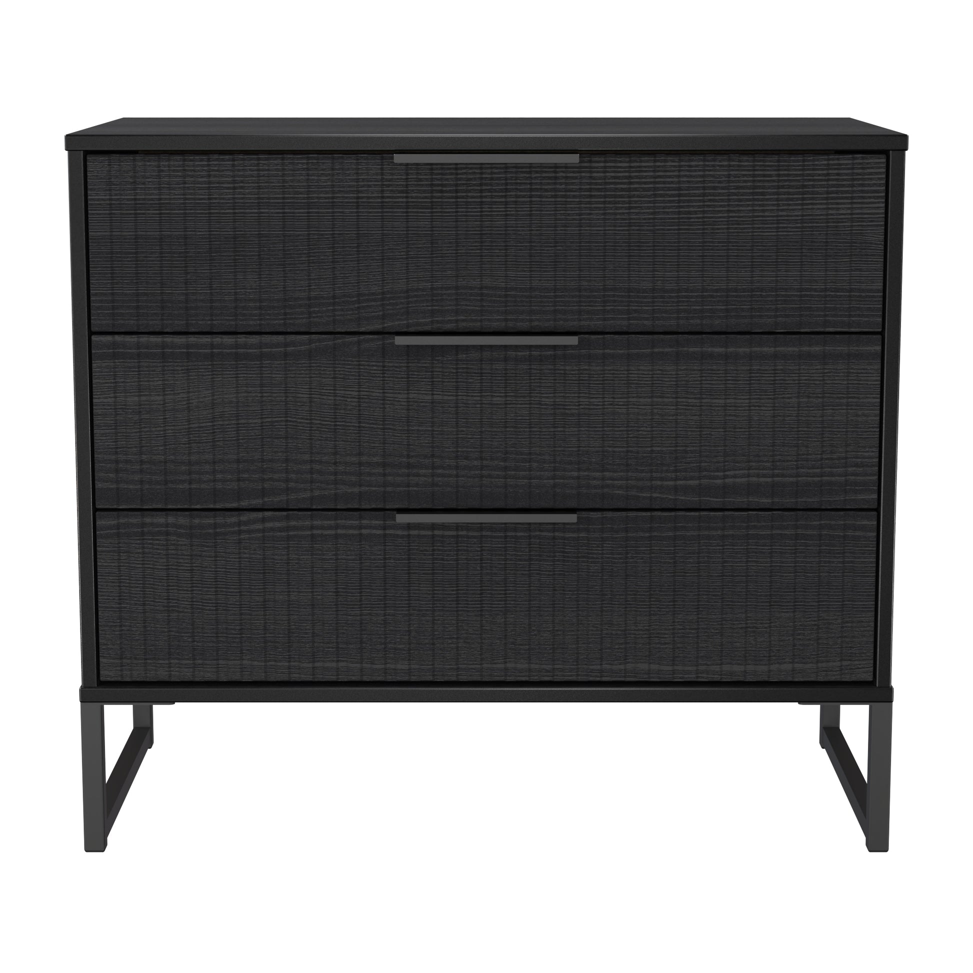 Fluted Chest of Drawers Black 3 Drawers 77cm