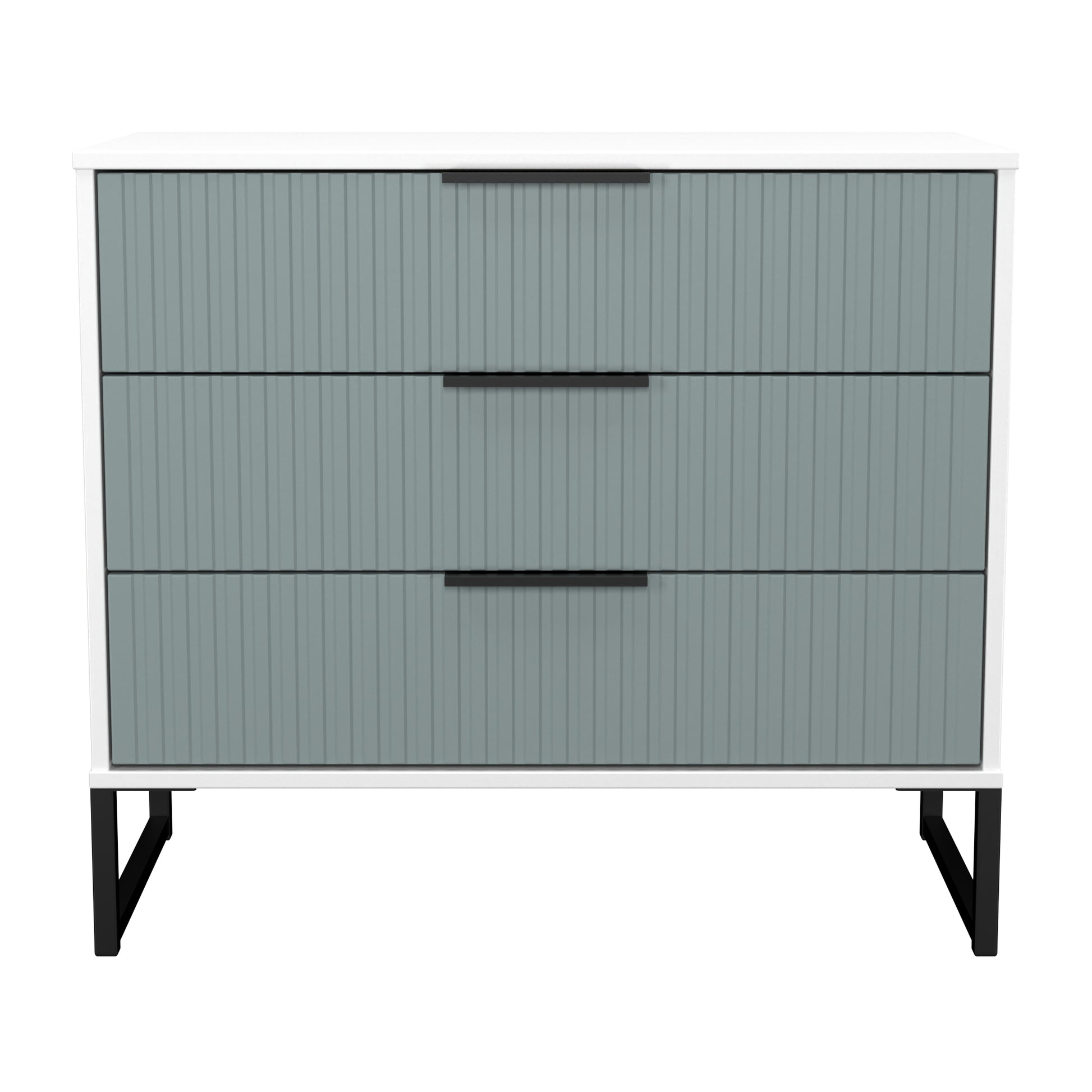 Fluted Chest of Drawers Teal & White 3 Drawers 77cm