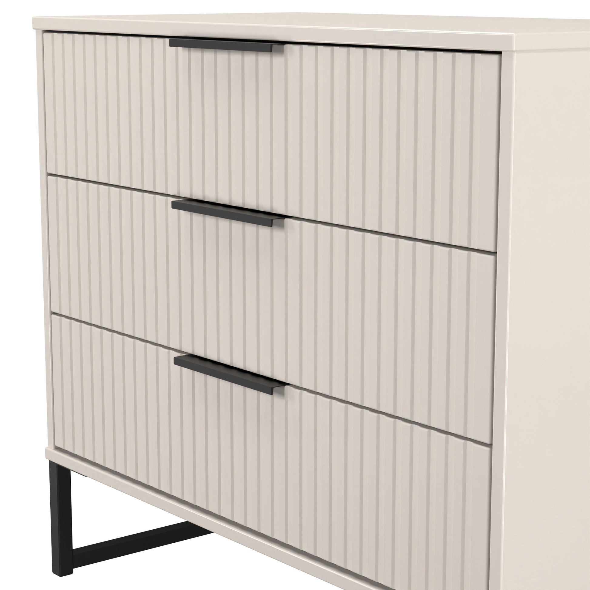 Fluted Chest of Drawers Off-White 3 Drawers 77cm