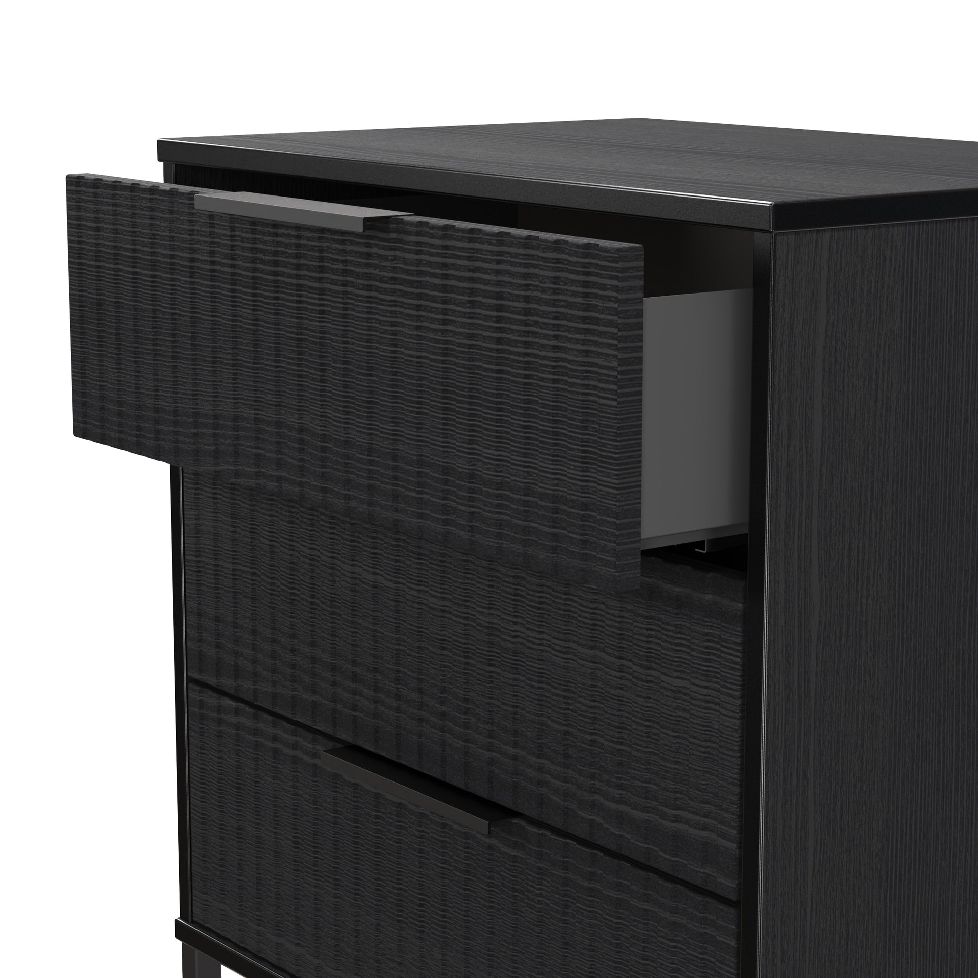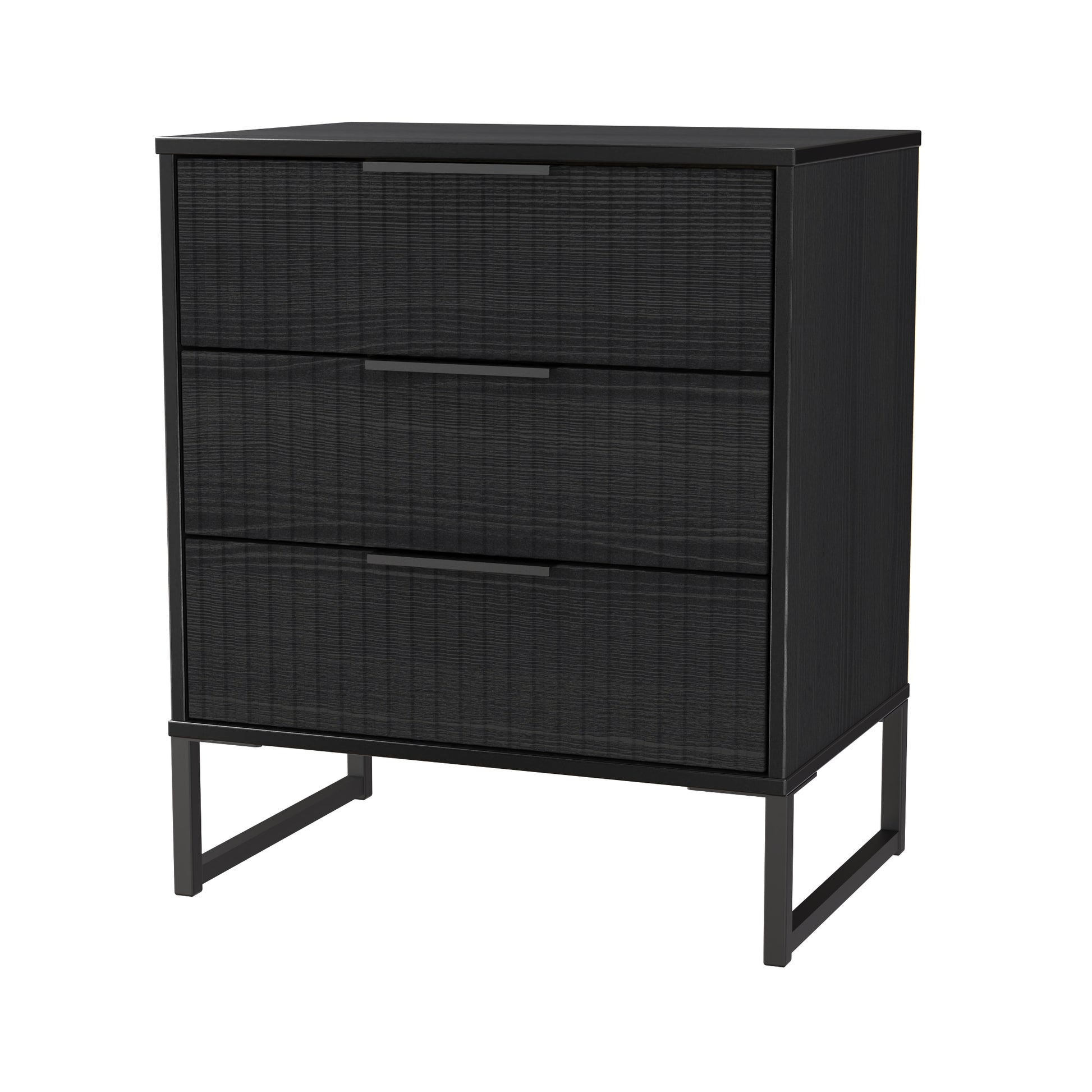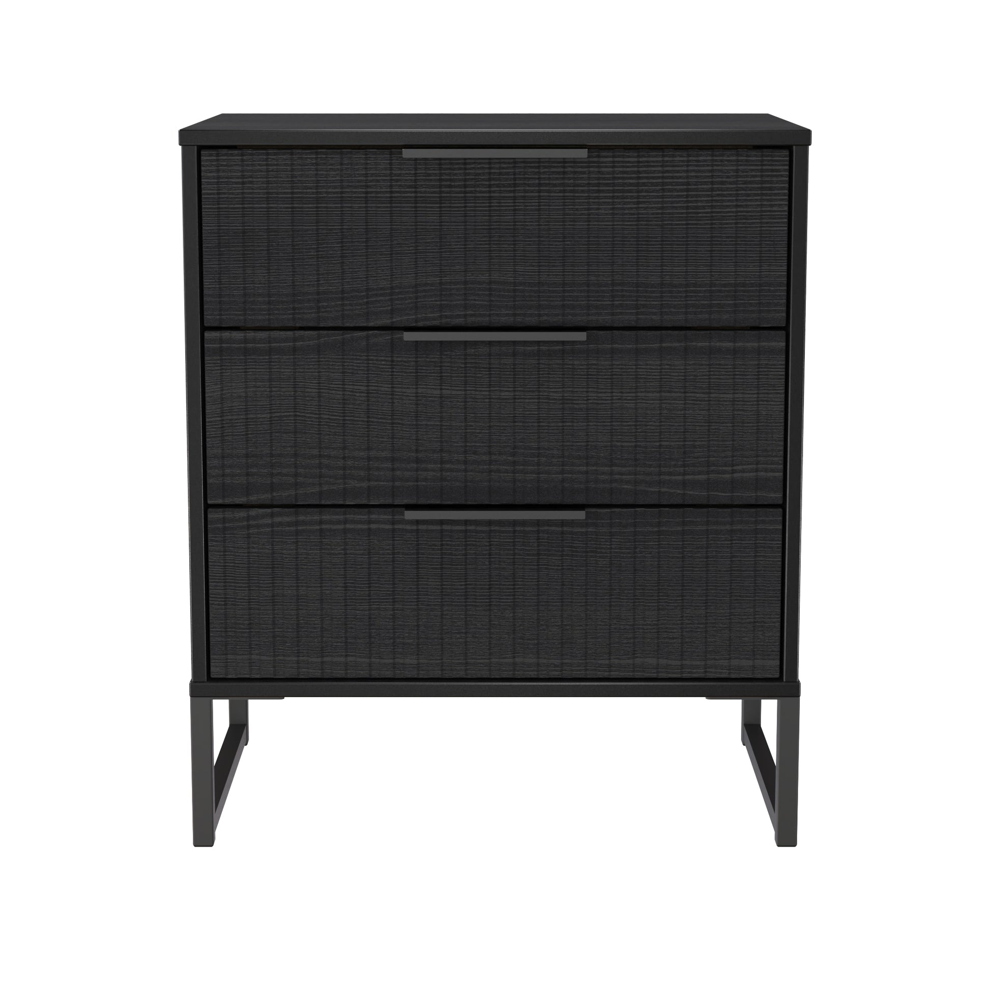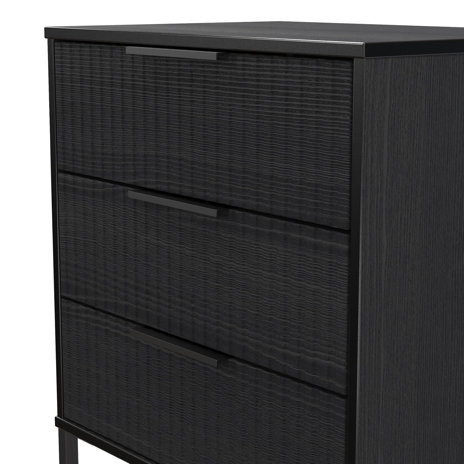 Fluted Chest of Drawers Black 3 Drawers 76cm