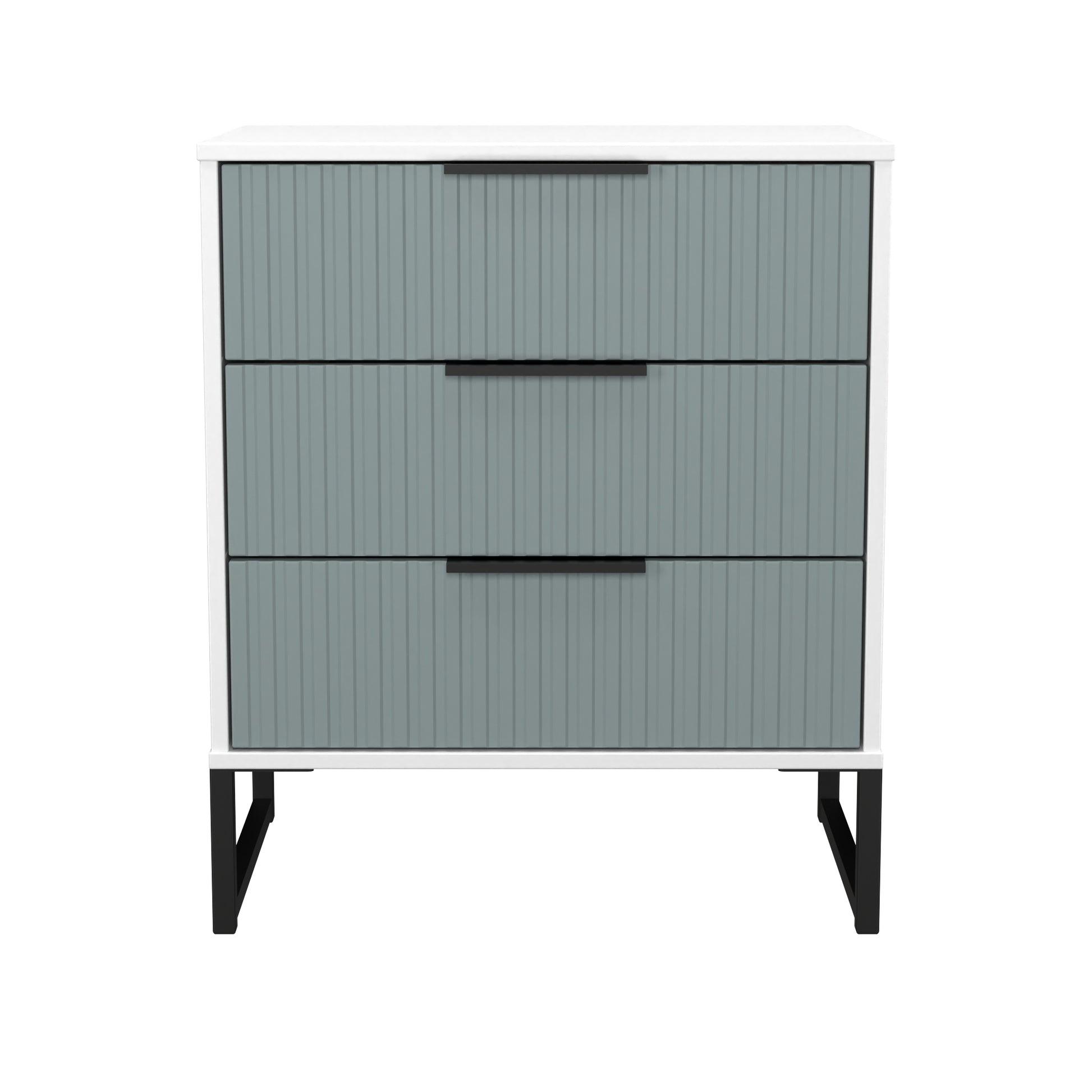 Fluted Chest of Drawers Teal & White 3 Drawers 76cm