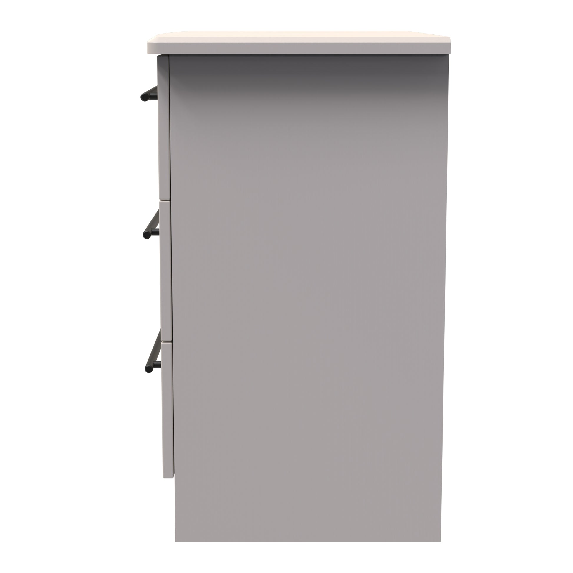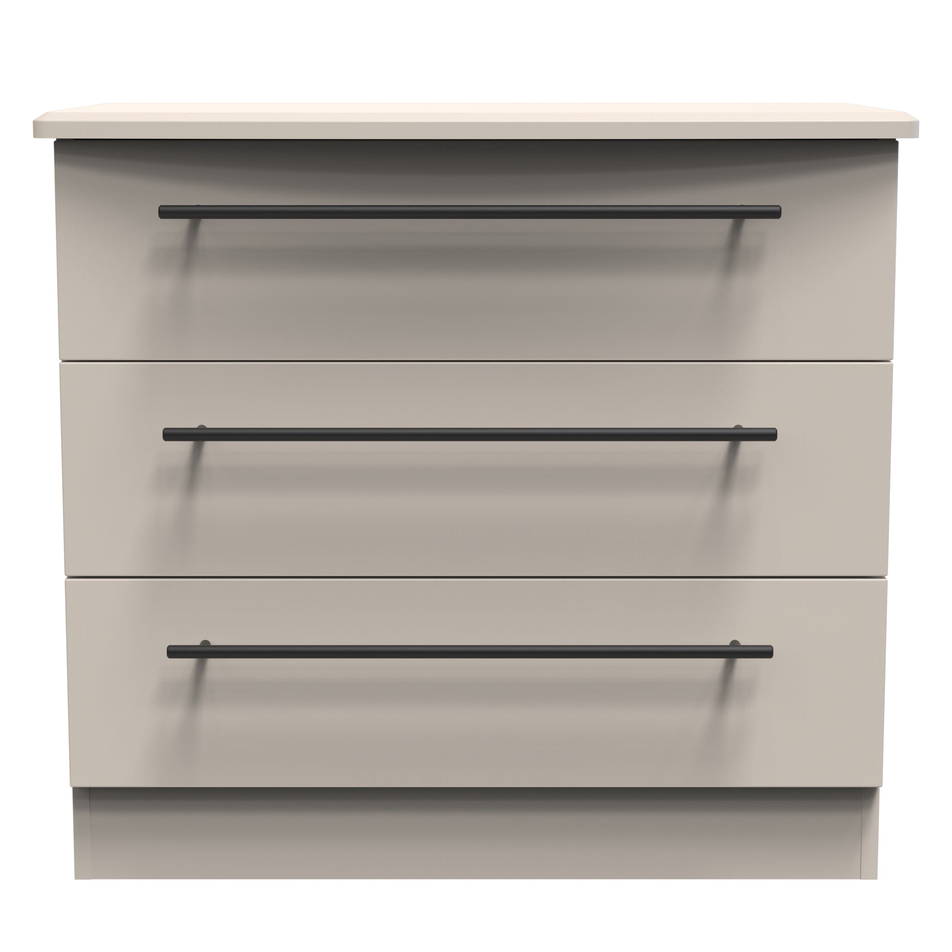 This wide 3 drawer chest of drawers is practical and stylish. Perfect for any home as a free standing storage unit. This range is modern and elegant with a smooth clean design. Features sleek black T-Bar handles and comes ina range of scratch resistant colours. All our furniture is made to order in the United Kingdom, to the highest quality. It is delivered within 10 working days direct to your location of choice by one of our two man delivery teams, and comes fully assembled (although legs may be removed to prevent damage in transit). Part of the Beverley Collection.