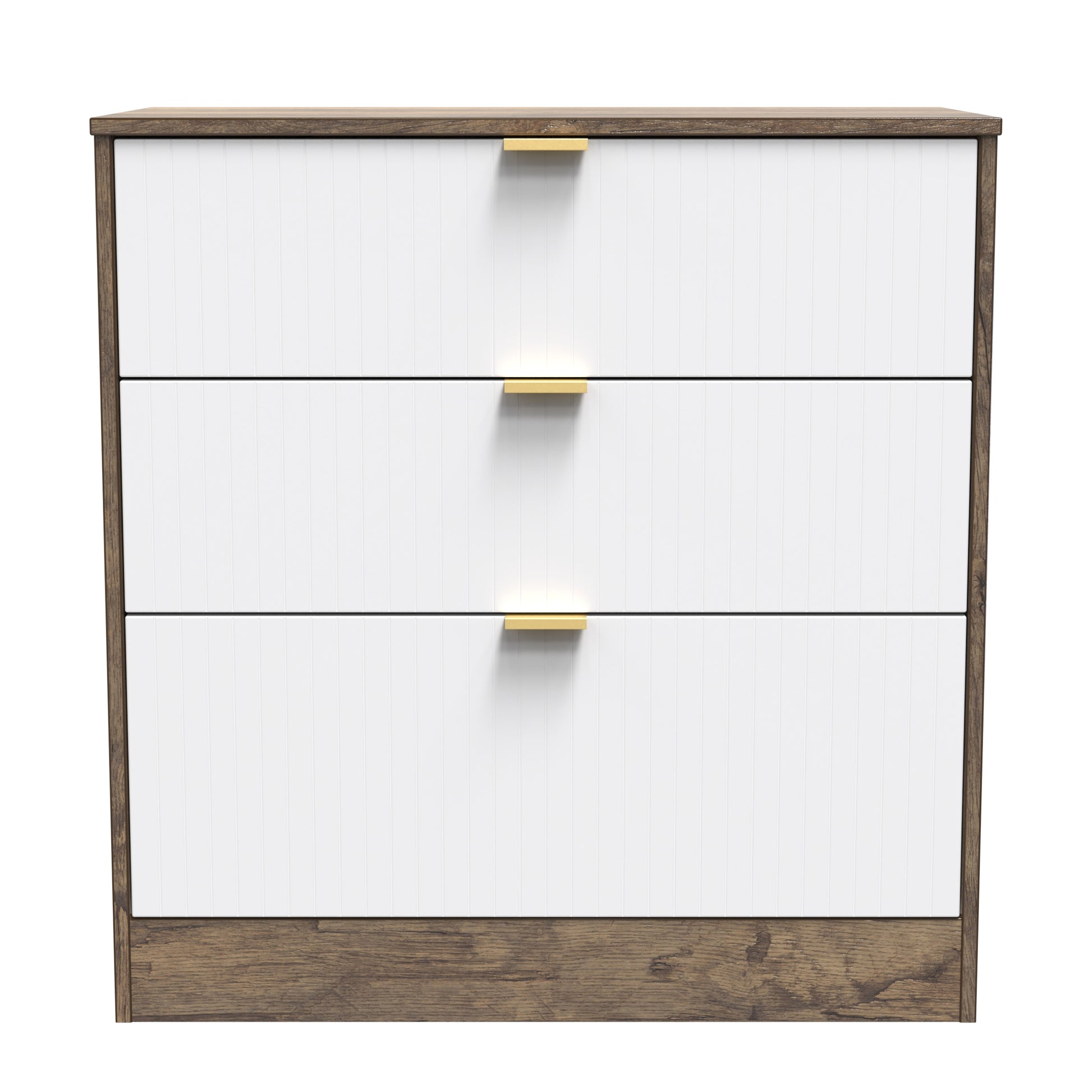 Nashville F Chest of Drawers White & Vintage Oak 3 Drawers 77cm