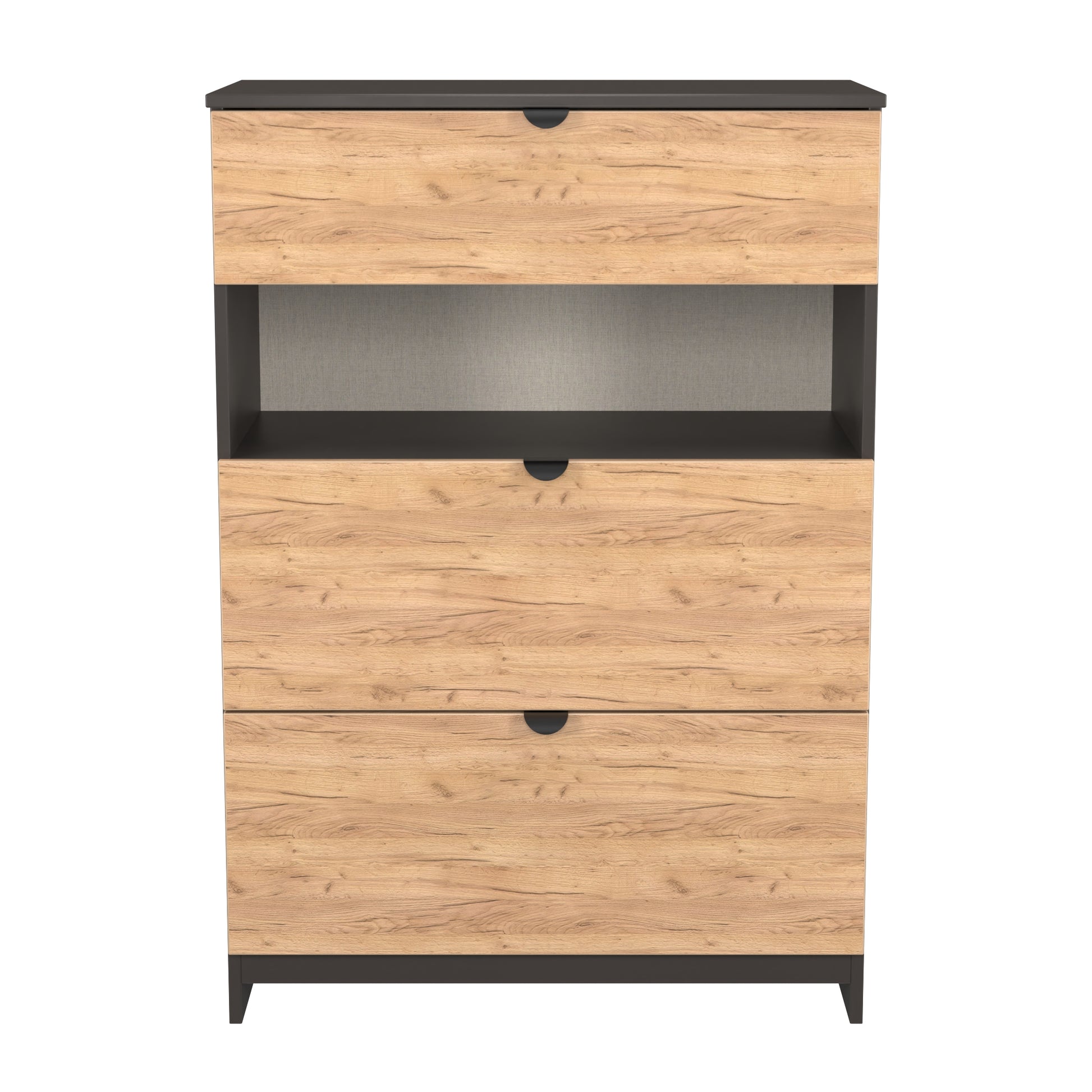 Bora Tall Chest of Drawers Oak & Dark Grey 1 Shelf 3 Drawers 108cm