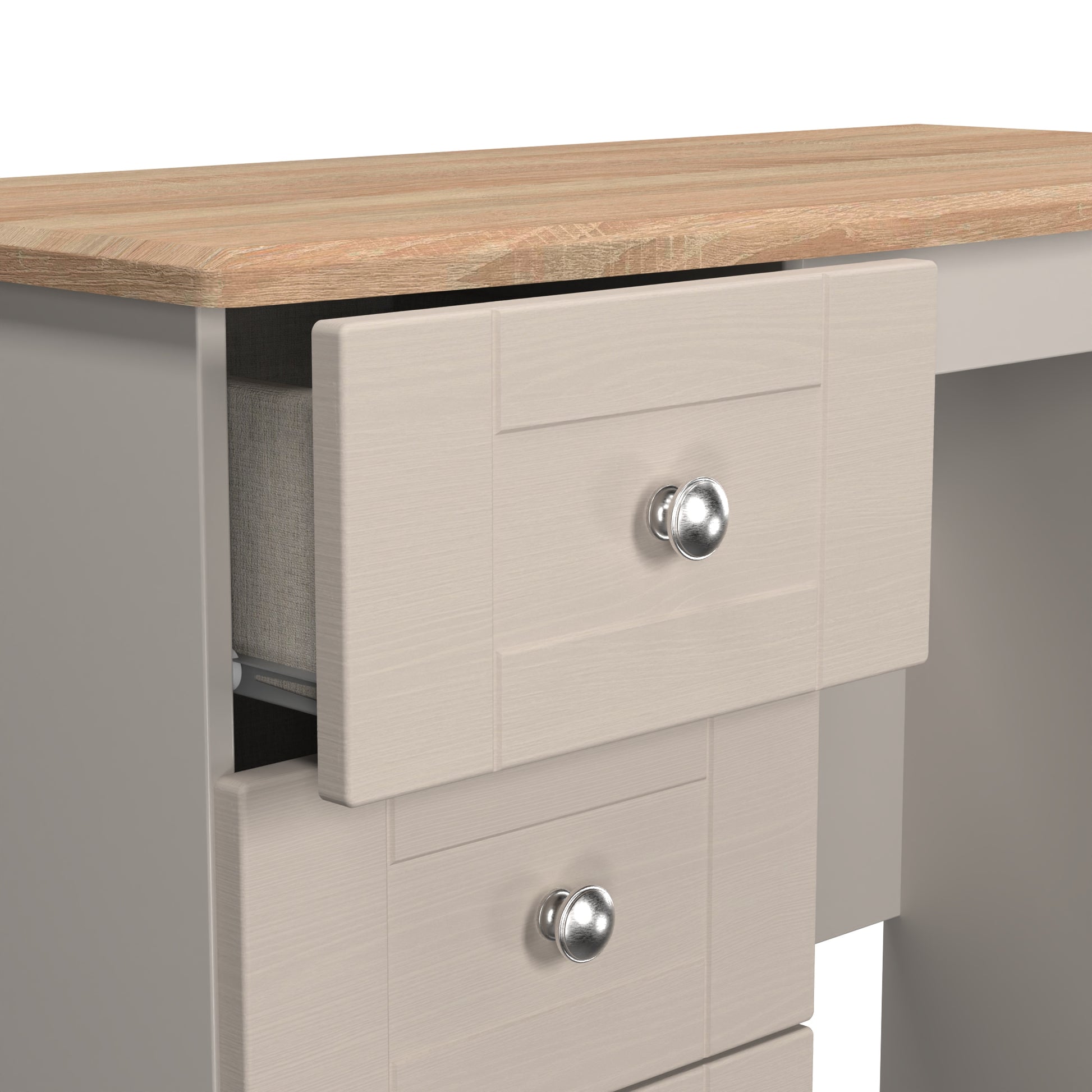 This practical 3 drawer narrow desk/vanity is perfect for any bedroom or office. A matching stool and mirror (in 2 sizes) are also available. Wood grain effect, panelled design, recessed fronts, contrasting wood top and chrome handles, this traditional Range is a beautifully elegant collection. With this range you have the freedom to choose from a wide range of furniture configurations, allowing you to create the perfect combination to optimise your storage space. All our furniture is made to order in the United Kingdom, to the highest quality. It is delivered within 10 working days direct to your location of choice by one of our two man delivery teams, and comes fully assembled - Please Note that any handles or legs may be removed durning transit to avoid the risk of damage. Part of the Sussex Collection.