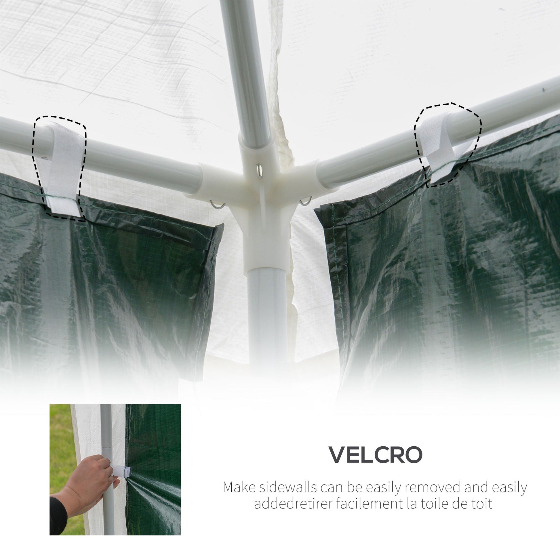 - Side walls can be easily removed and can be easily added with Velcro attachments.