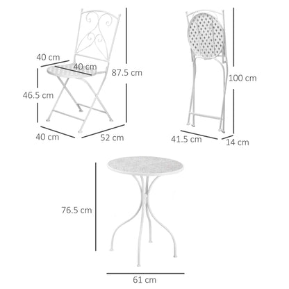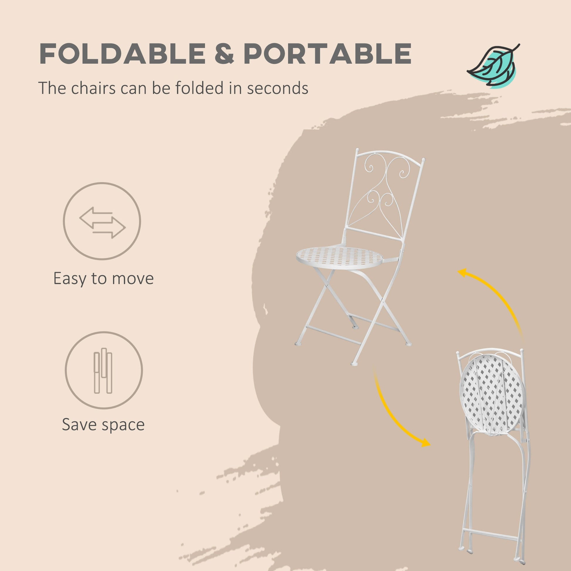 This Outsunny outdoor bistro set is ready for the seasons ahead. It includes a round side table with engraved scrolled, with pairs with the scrolling on the chair backs - pretty and elegant. All pieces are made from metal, so they're strong and durable and will support you when being used. Both the chairs and table are foldable - so when you're done, you can carry and store them easily. A great way to enjoy the sunshine with company.