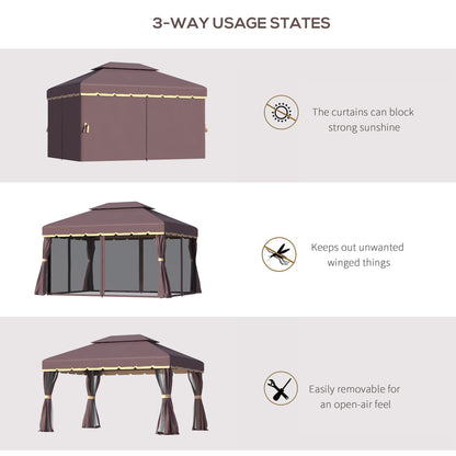 Outdoor gatherings made to be memorable - with full help from this 4m x 3m Outsunny gazebo with sides. It's spacious enough for plenty of people inside, with the curtains creating an open or private space whenever. The curtains also come with mesh to help protect you from annoying insects. Comes with eight ground stakes for extra stability. Come do your summer parties the right way this season with our garden pavilion.