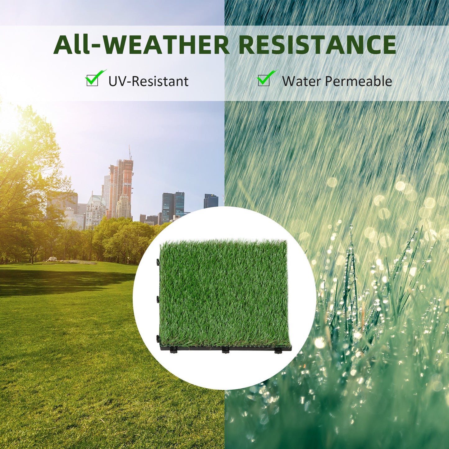 - Holes allow rainwater to drain, keeping the real grass underneath hydrated
