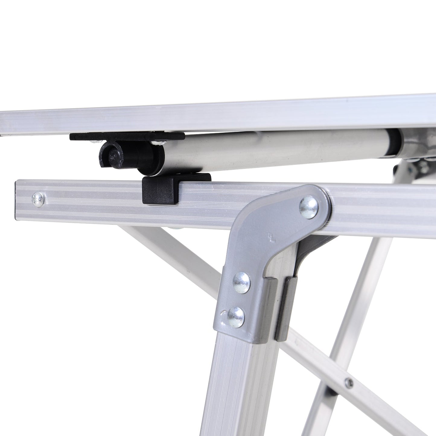 Bring simplicity into dining during your outdoor adventures with this picnic table from Outsunny. Formed from aluminium to ensure it is lightweight yet sturdy, this table is formed of two parts: the base and the tabletop. Foldable in design, the base is fitted with four legs, all of which can be adjusted from 45cm to 65cm, allowing you to set it at a height which suits, with rubber pads on the legs to keep it balanced on the ground. Measuring 90L x 53Wcm, the tabletop rolls out smoothly and slots into place securely, a carry bag included for fuss-free use straight from the start. The perfect excuse to dine outdoors with all your friends and family.