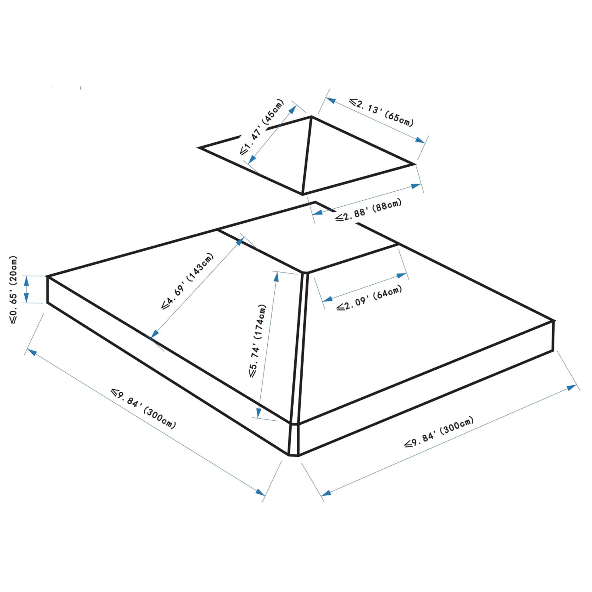 3M Gazebo Top Cover Double Tier Canopy Replacement Pavilion Roof Deep Grey