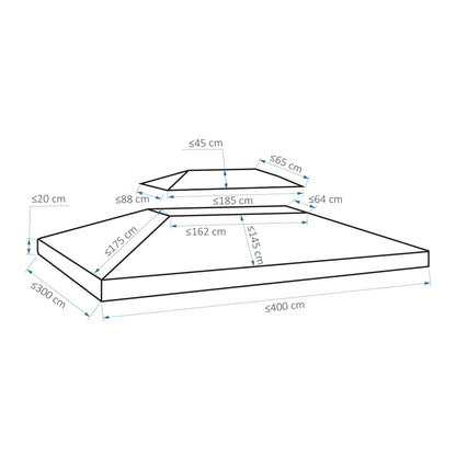 Bringing your gazebo back to life is super easy with this gazebo waterproof cover from Outsunny. Made from high quality polyester with a PA coating for durability and protection against the sun, it features a two-tier rooftop design to allow air to circulate when in use, alongside ten holes for water drainage. Our gazebo canopy replacement will fit 2.9-3Wm x 3.9-4Lm size frames (Outsunny sku 01-0153).