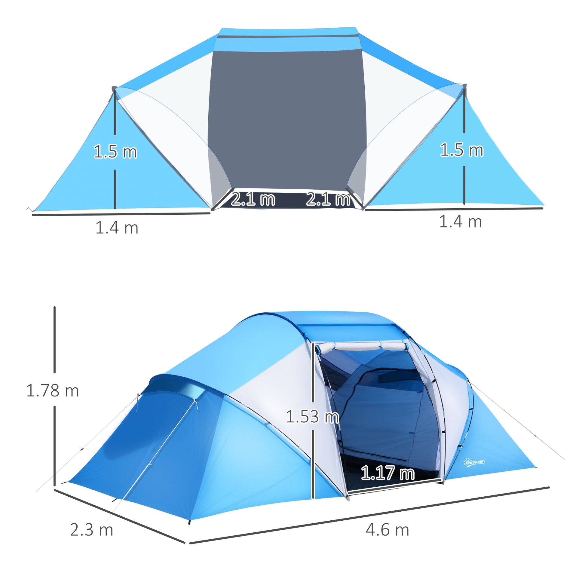 This easy-to-assemble Outsunny tent is ideal for those who love to go camping, hiking or even festivals. Its spacious design can accommodate up to four-six people comfortably, thanks to the two bedrooms and living room, making it ideal for enjoying time away with friends and family. Made from polyester taffeta with sturdy fibreglass poles for support and structure, it is UV and water resistant for use in both the sun and rain. It is finished with mesh windows to provide plenty of air circulation as well as keeping bugs and mosquitoes at bay.