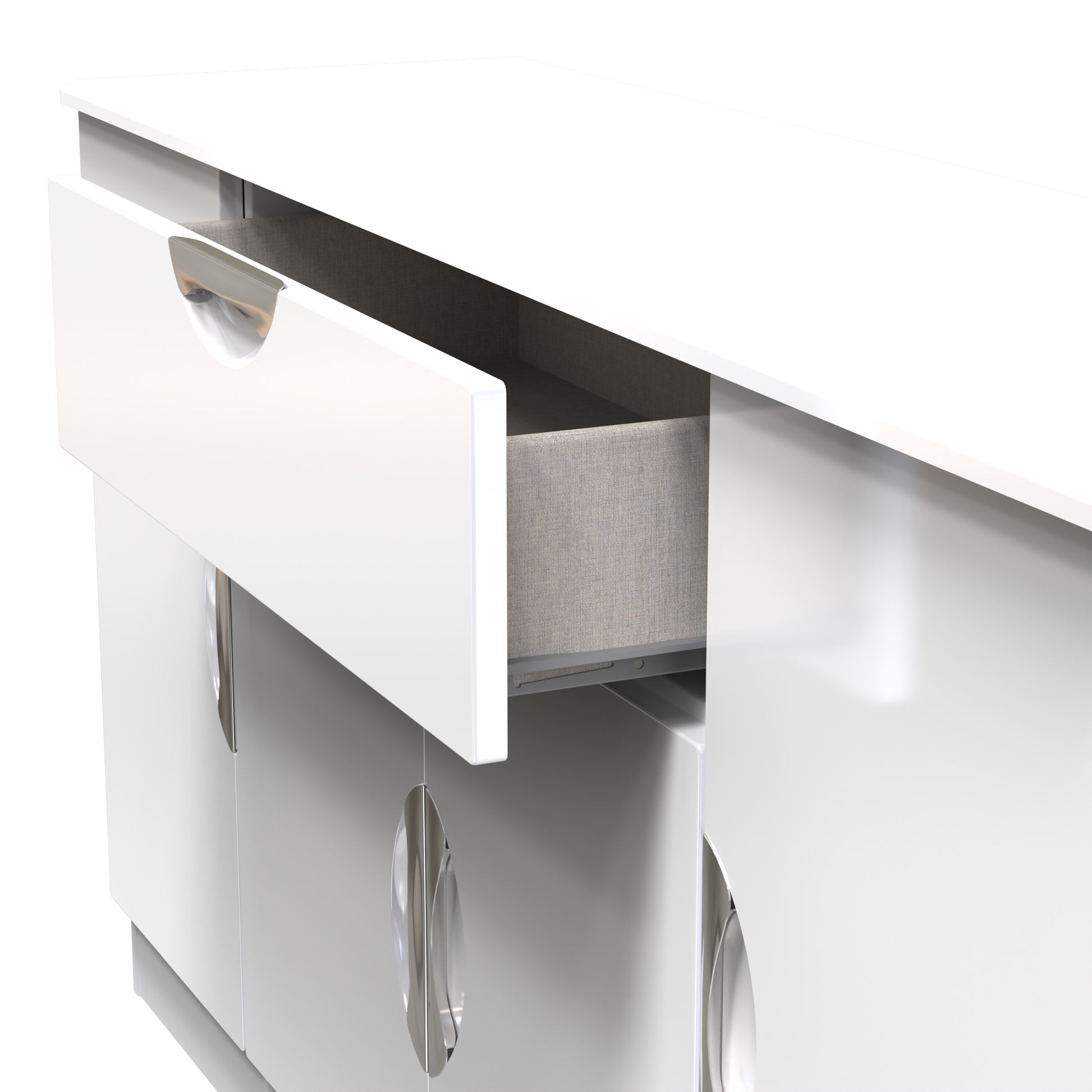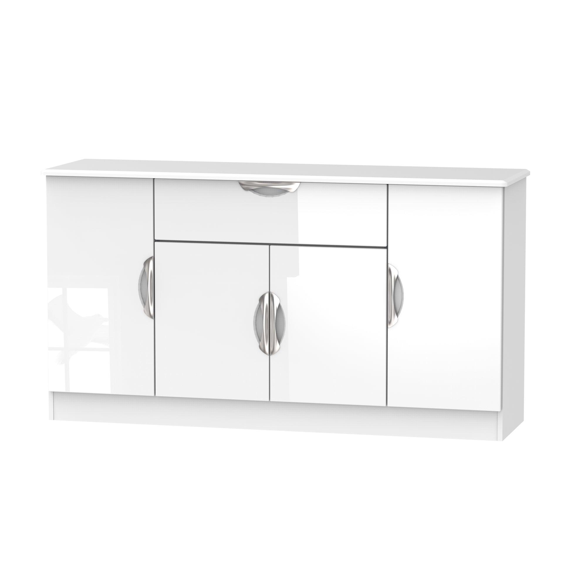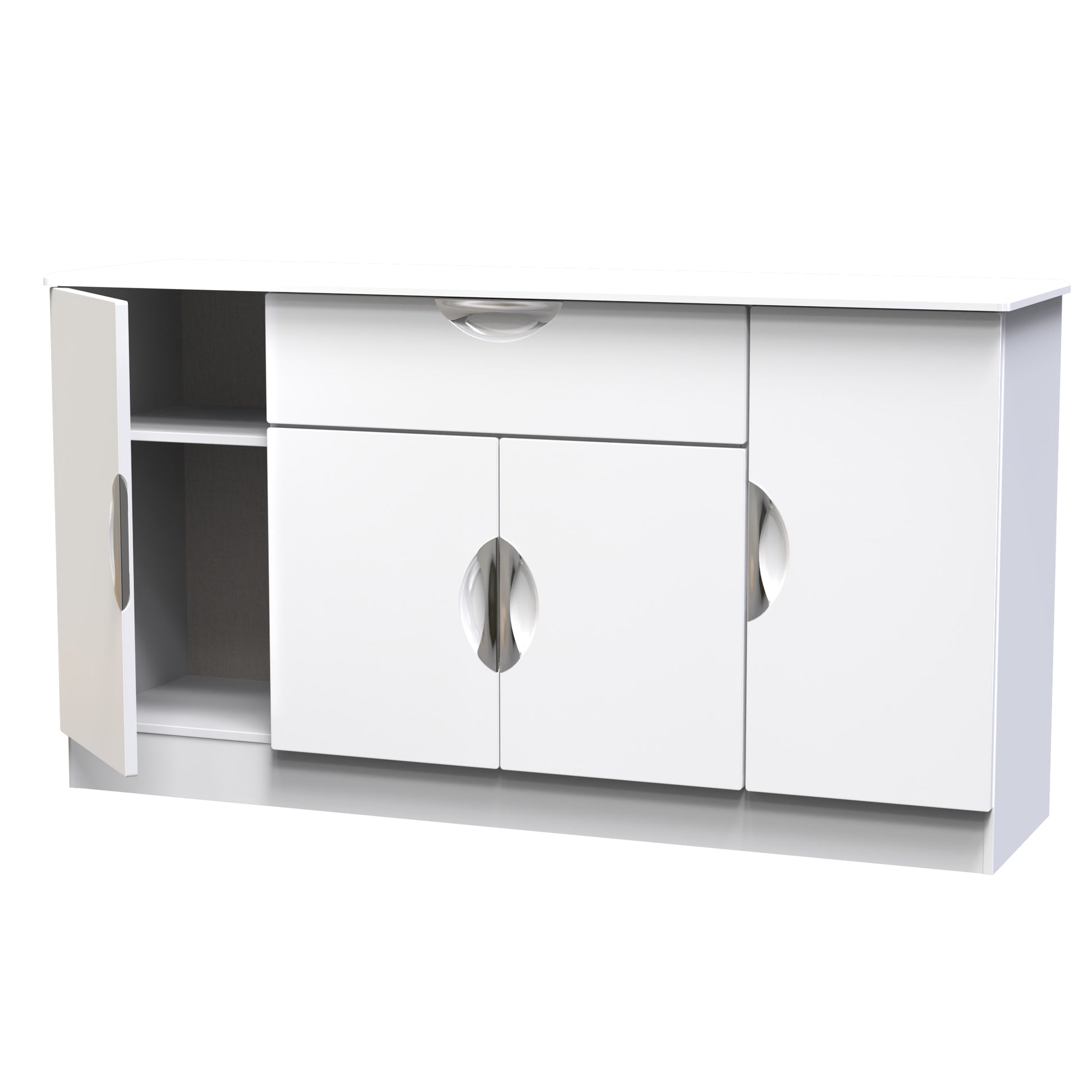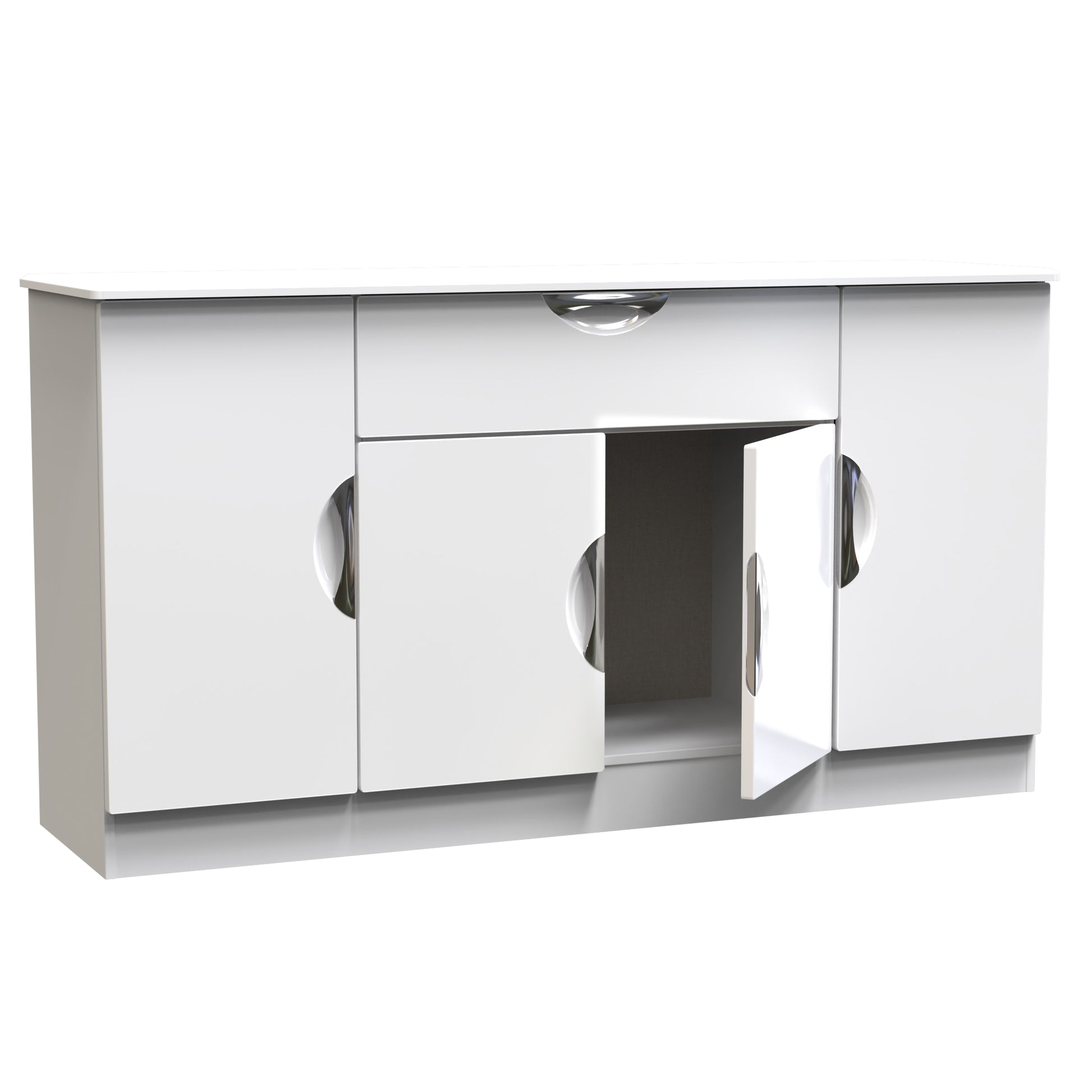 This extra wide storage unit has 2 large storage cupboard, a central cupboard and a single storage drawer making it perfect for any living room, dinning room or louge. Could also be used as a TV/Media stand or side board. Boasting a clean, contemporary look and pleasing practicality, the furniture range makes a seamless addition to any modern looking home. The range offers an array of practical, organised space for items both large and small that will help keep your room neat and tidy. All pieces have a scratch-resistant veneer to help prevent the wear and tear that can come with everyday usage, while the extensive colour options of the drawers and doors is complemented by distinctive cut-out handles and a smooth finish for a great mix of style and functionality. All our furniture is made to order in the United Kingdom, to the highest quality. It is delivered within 10 working days direct to your location of choice by one of our two man delivery teams, and comes fully assembled (although legs may be removed to prevent damage in transit). Part of the Camden Collection.