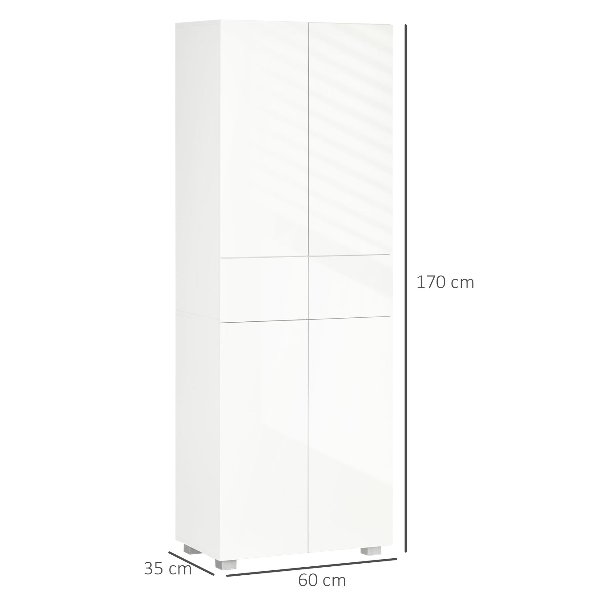 Expand kitchen space the modern way, with this HOMCOM storage cupboard. The high gloss design, paired with the clean-cut shape, makes it a fresh addition which looks great in plenty of places. It comes with a top and bottom cupboard and middle drawer - plenty of storage. The push-open door design makes it easy to access - no pulling on handles. Inner adjustable shelves - set to the level you want. A true all-rounder.