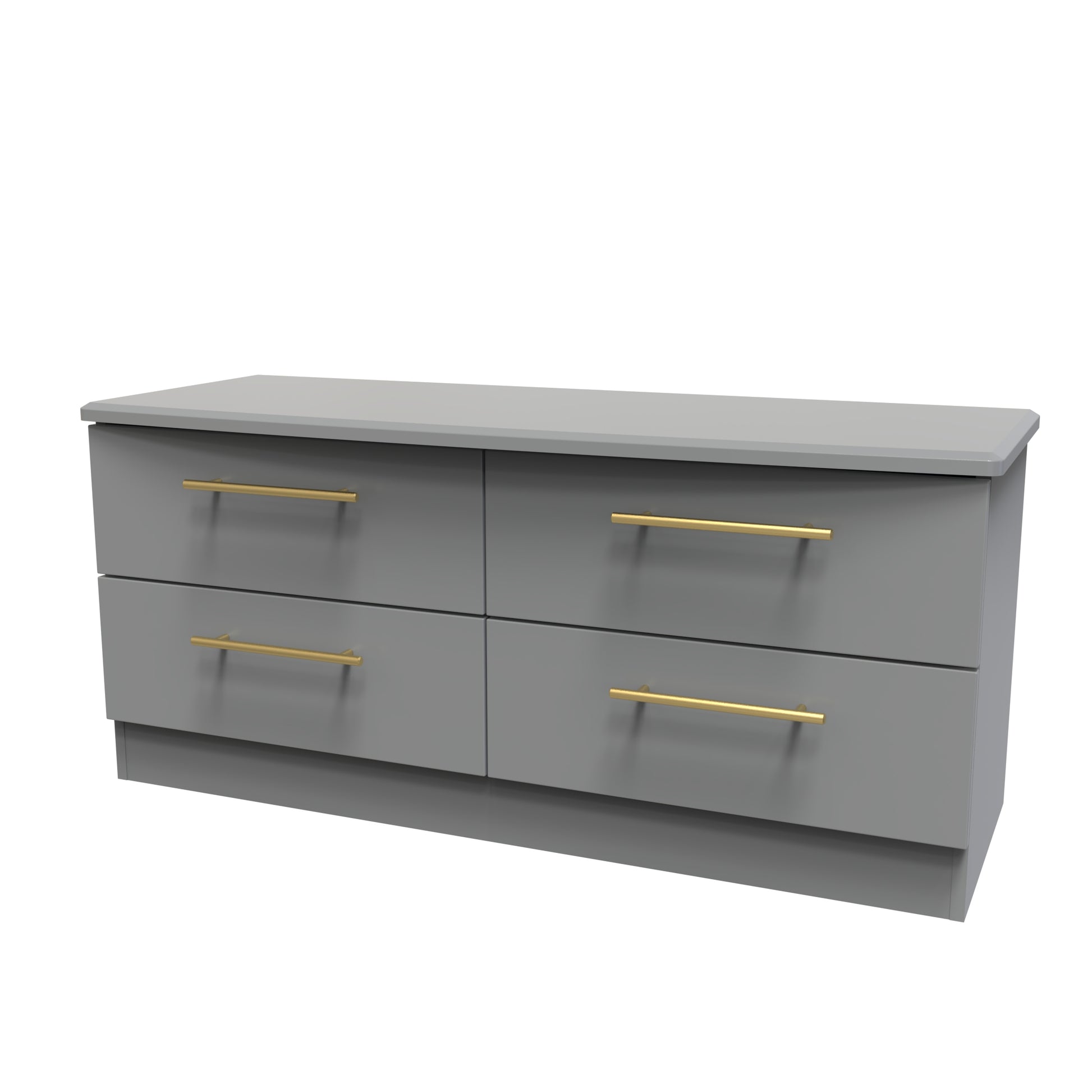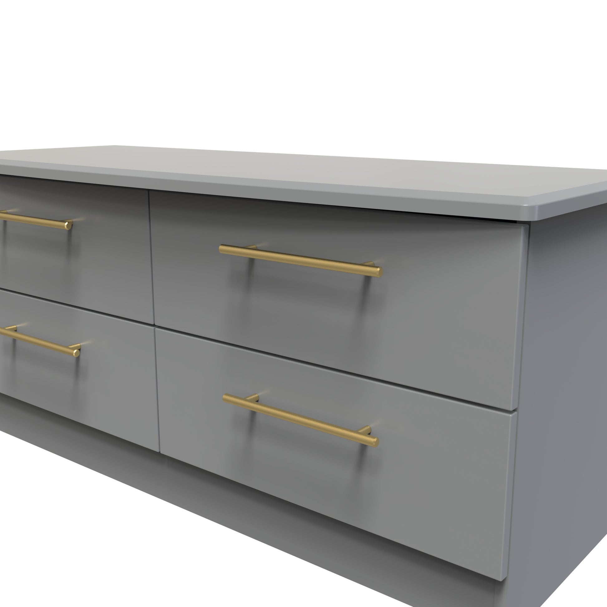 A large 4 drawer bed box. A Perfect storage solution for any room (not just the end of your bed). Could also be used as a low level TV/Media stand. This range is modern and elegant with a smooth clean design. Features sleek gold T-Bar handles and comes ina range of scratch resistant colours. All our furniture is made to order in the United Kingdom, to the highest quality. It is delivered within 10 working days direct to your location of choice by one of our two man delivery teams, and comes fully assembled (although legs may be removed to prevent damage in transit). Part of the Haworth Collection.