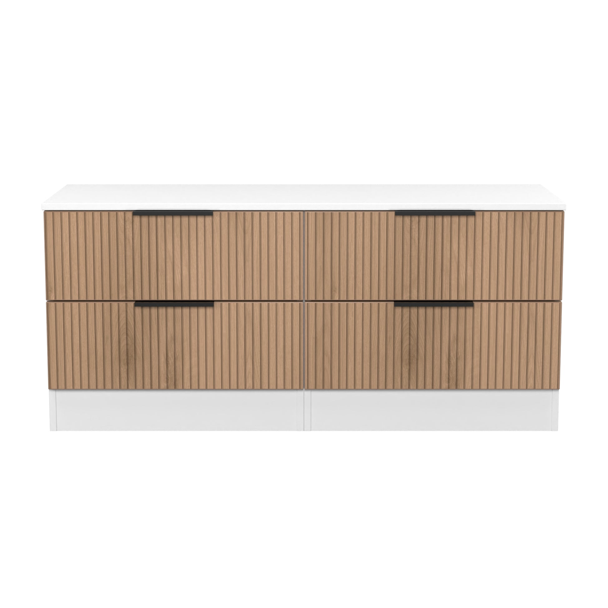 A large 4 drawer bed box. A Perfect storage solution for any room (not just the end of your bed). Could also be used as a low level TV/Media stand. A strinking new range with a eye catching Slat Effect patten on the fronts or the doors and drawers, as well as sleek black metal handles. Modern and striking this range will stand out in any modern home. All our furniture is made to order in the United Kingdom, to the highest quality using responsibly sourced materials. It is delivered within 10 working days direct to your location of choice by one of our two man delivery teams, and comes fully assembled (although items with legs will have those legs removed during transit to avoid damage). Part of the Java Collection.