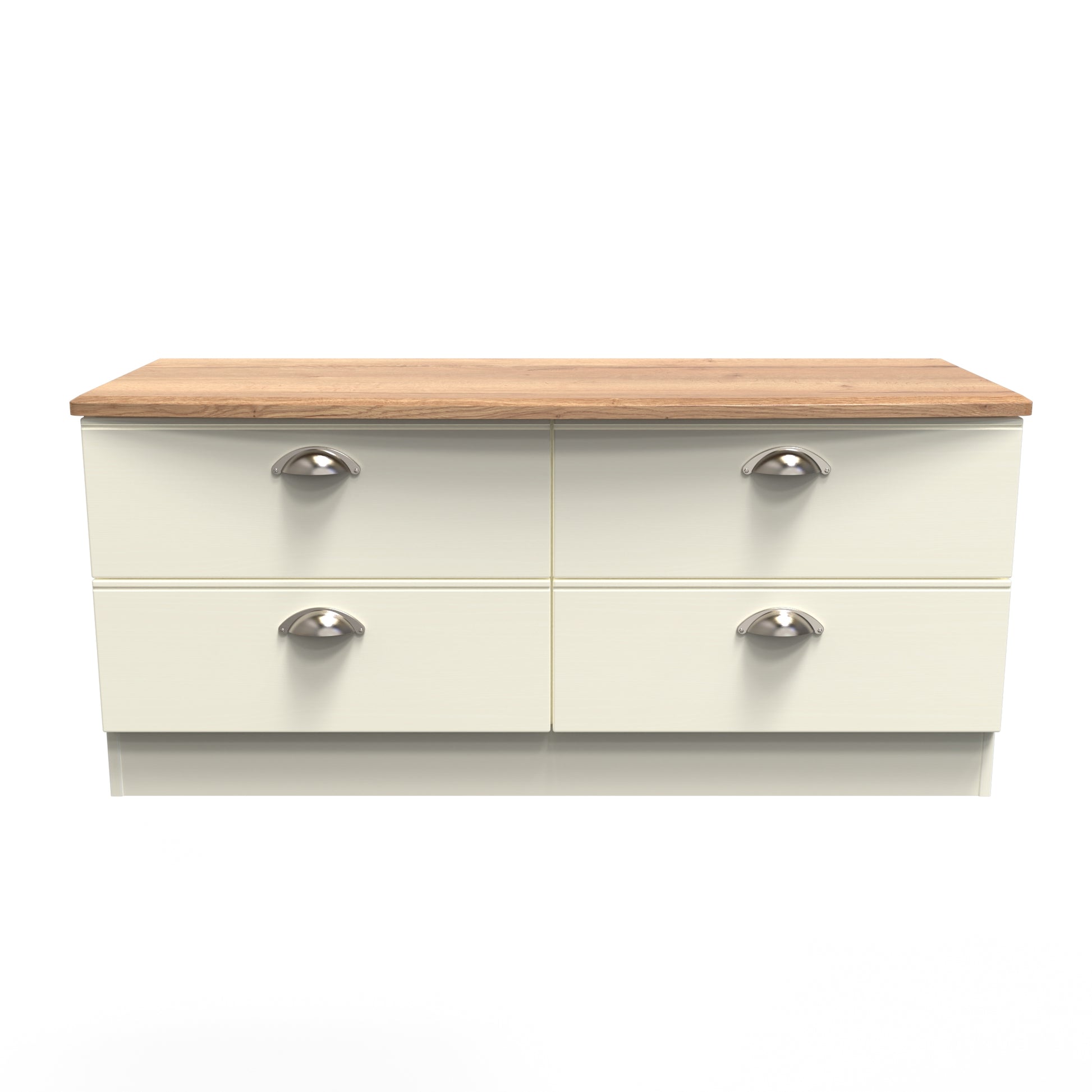 Victoria Large Chest of Drawers Cream & Light Oak 4 Drawers 112cm