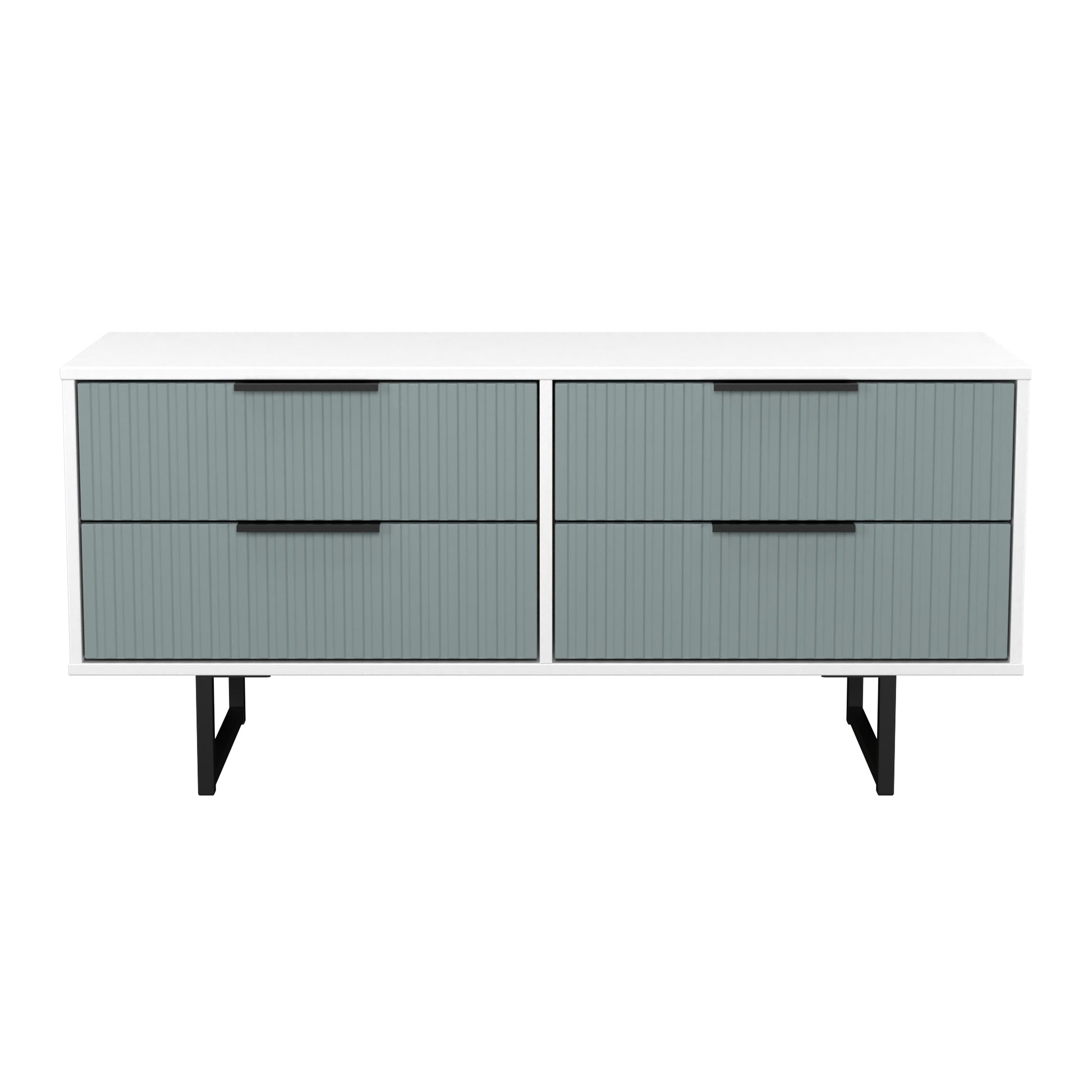 Fluted Large Chest of Drawers Teal & White 4 Drawers 115cm