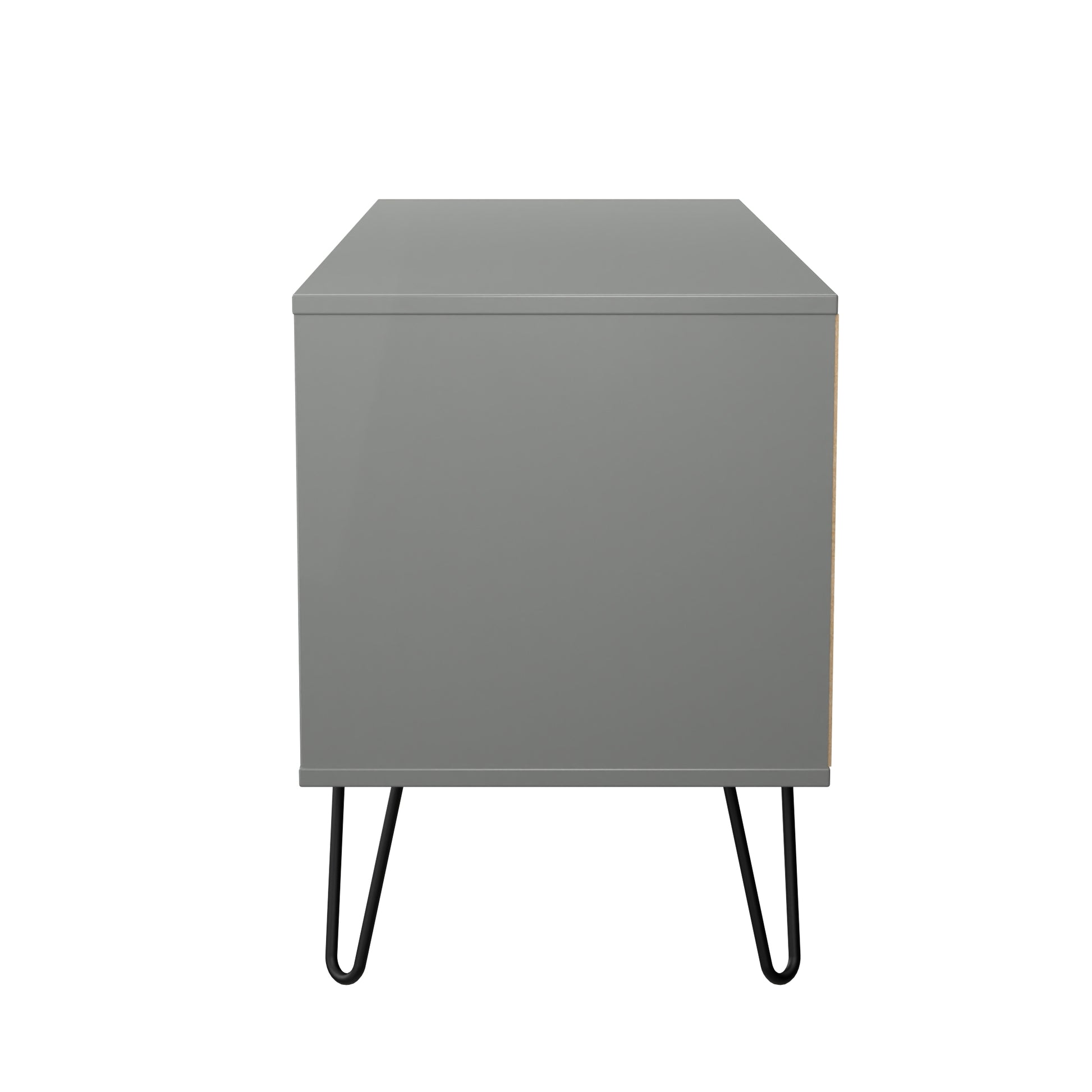 A large 4 drawer bed box. A Perfect storage solution for any room (not just the end of your bed). Could also be used as a low level TV/Media stand. A modern and distinctive range. This ranges unique aesthetic is best represented by the distinctive "Harlequin" patten of the drawer and door fronts. Also features Black Metal Handles and Black Hairpin Legs. Comes in a wide range of colours including eye cathching two tone colour combinations. All our furniture is made to order in the United Kingdom, to the highest quality using responsibly sourced materials. It is delivered within 10 working days direct to your location of choice by one of our two man delivery teams, and comes fully assembled (although items with legs will have those legs removed during transit to avoid damage). Part of the Harlequin Collection.