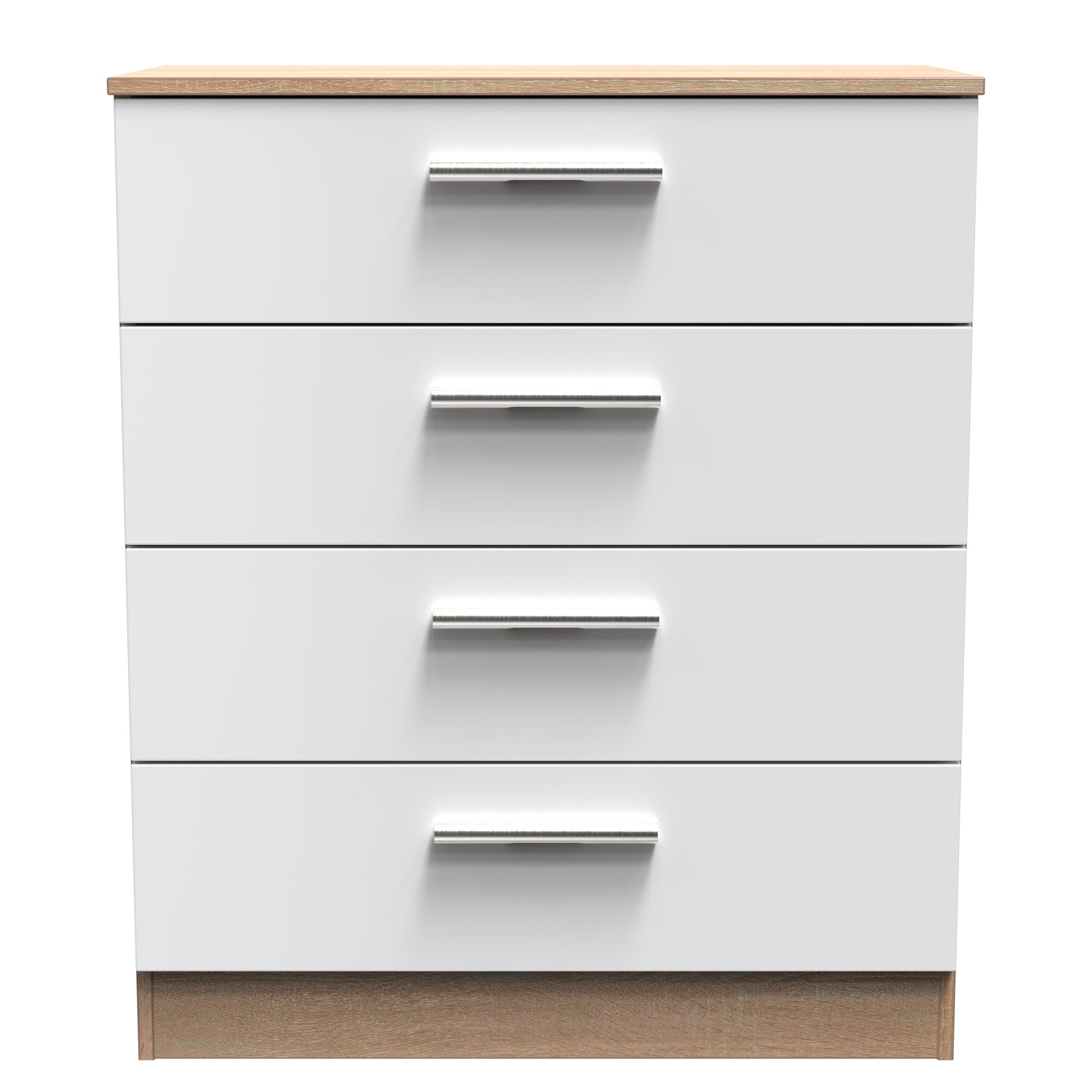 Contrast Chest of Drawers White & Oak 4 Drawers 89cm