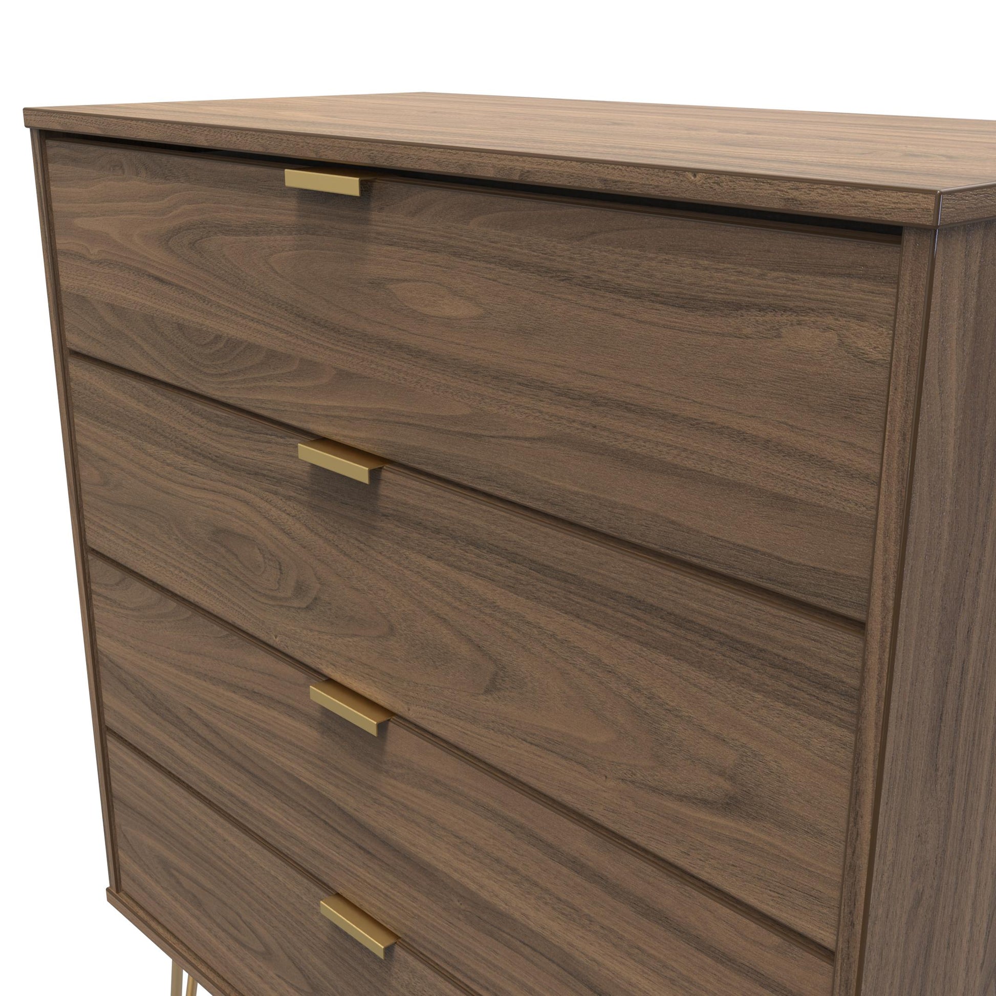 This wide 4 drawer chest of drawers is practical and stylish. Perfect for any home as a free standing storage unit. Modern and stylish, this striking range is available in a range of durable scratch resistant colour or natural wood finishes. With pull handles on all doors and drawers, with gold hairpin metal legs. Comes with Soft Close Drawers. All our furniture is made to order in the United Kingdom, to the highest quality. It is delivered within 10 working days direct to your location of choice by one of our two man delivery teams, and comes fully assembled (although legs may be removed to prevent damage in transit). Part of the Hong Kong F Collection.