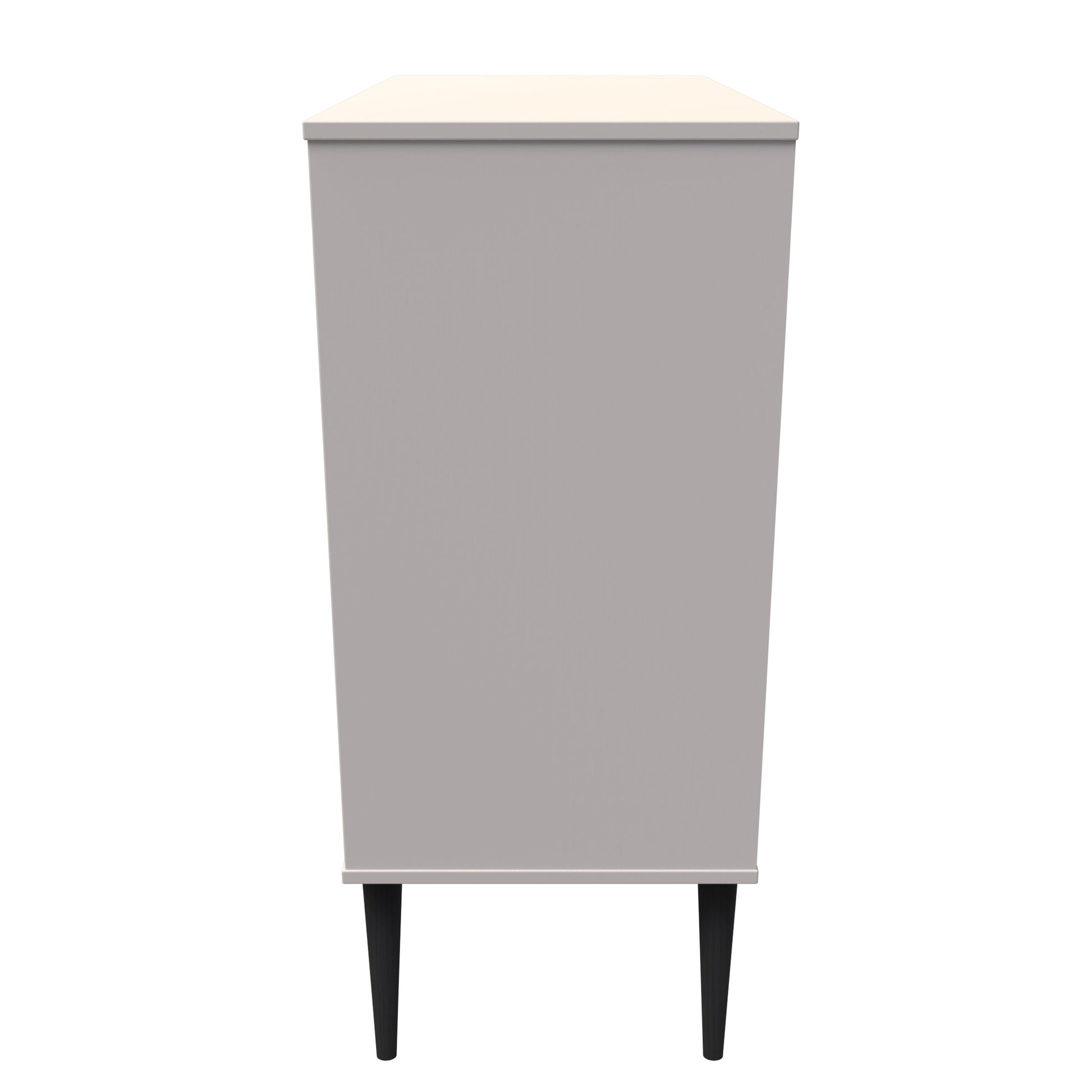 This wide 4 drawer chest of drawers is practical and stylish. Perfect for any home as a free standing storage unit. A modern and distinctive range. This ranges unique aesthetic is best represented by the distinctive "Pixel" patten of the drawer and door fronts. Also features Black Metal Handles and Black Hairpin Legs. Comes in a wide range of colours including eye cathching two tone colour combinations. All our furniture is made to order in the United Kingdom, to the highest quality. It is delivered within 10 working days direct to your location of choice by one of our two man delivery teams, and comes fully assembled (although legs may be removed to prevent damage in transit). Part of the Pixel Collection.