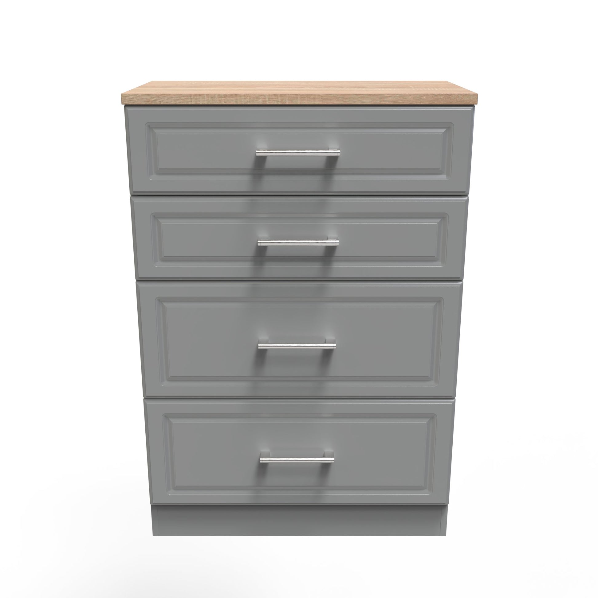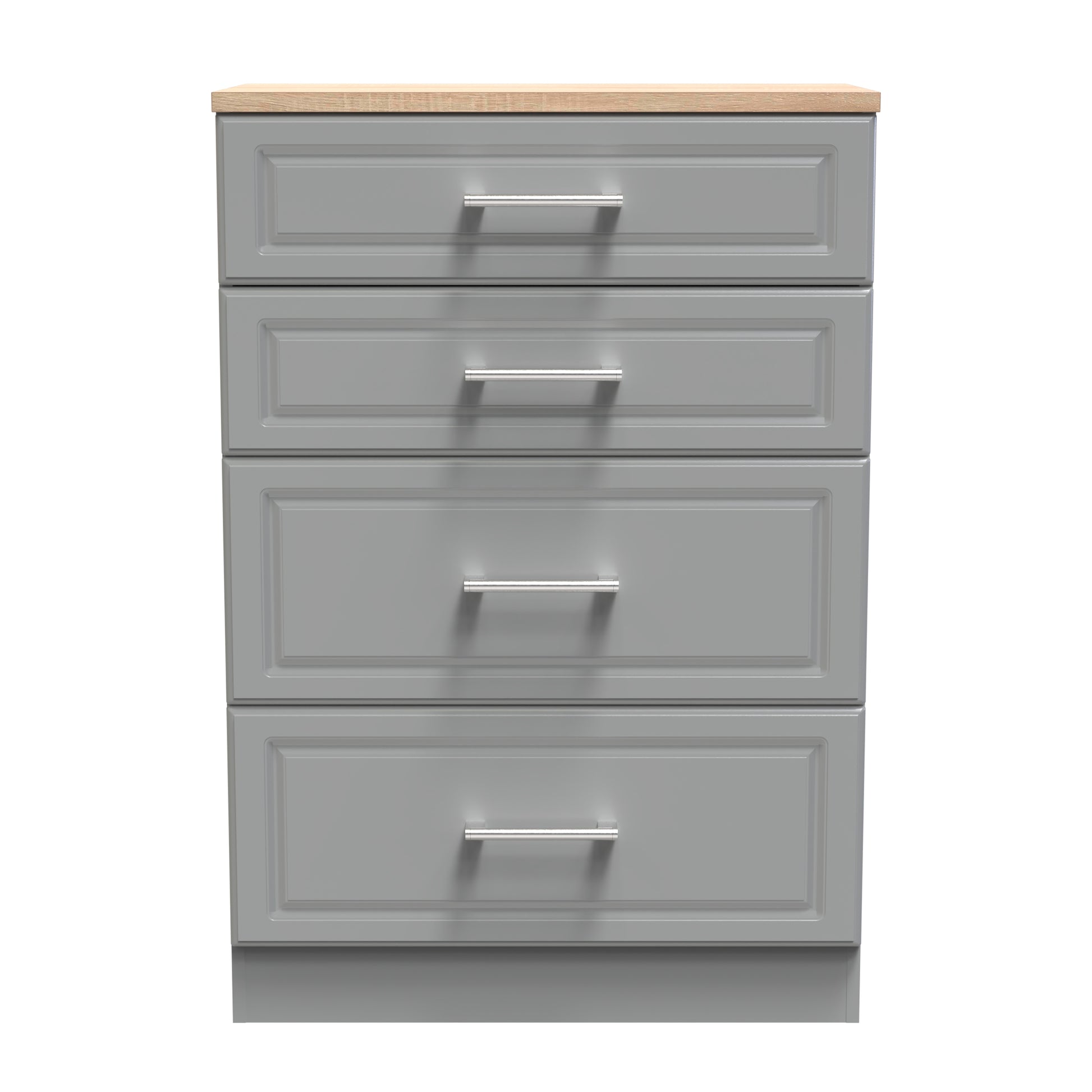 Kent Tall Chest of Drawers Grey & Oak 4 Drawers 108cm