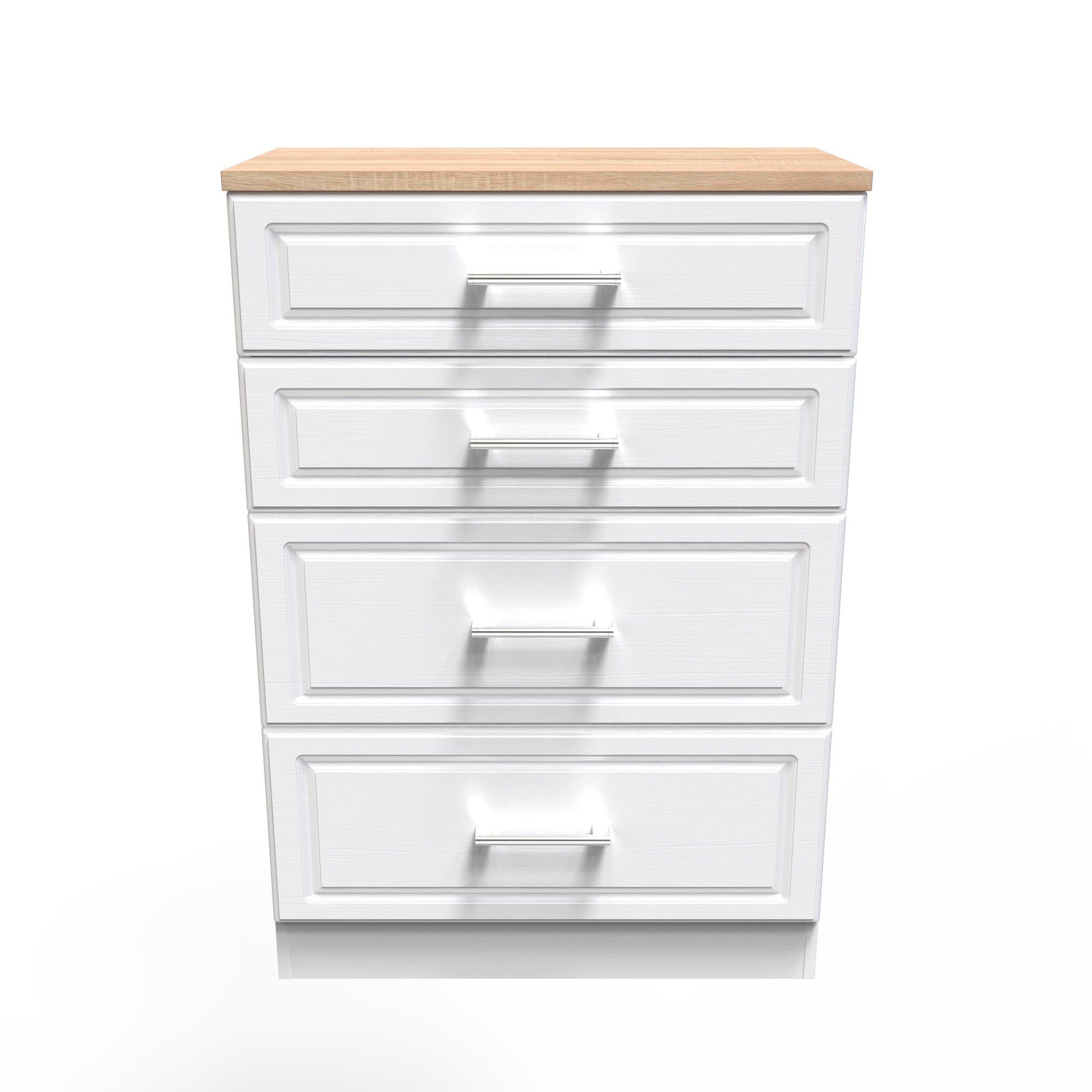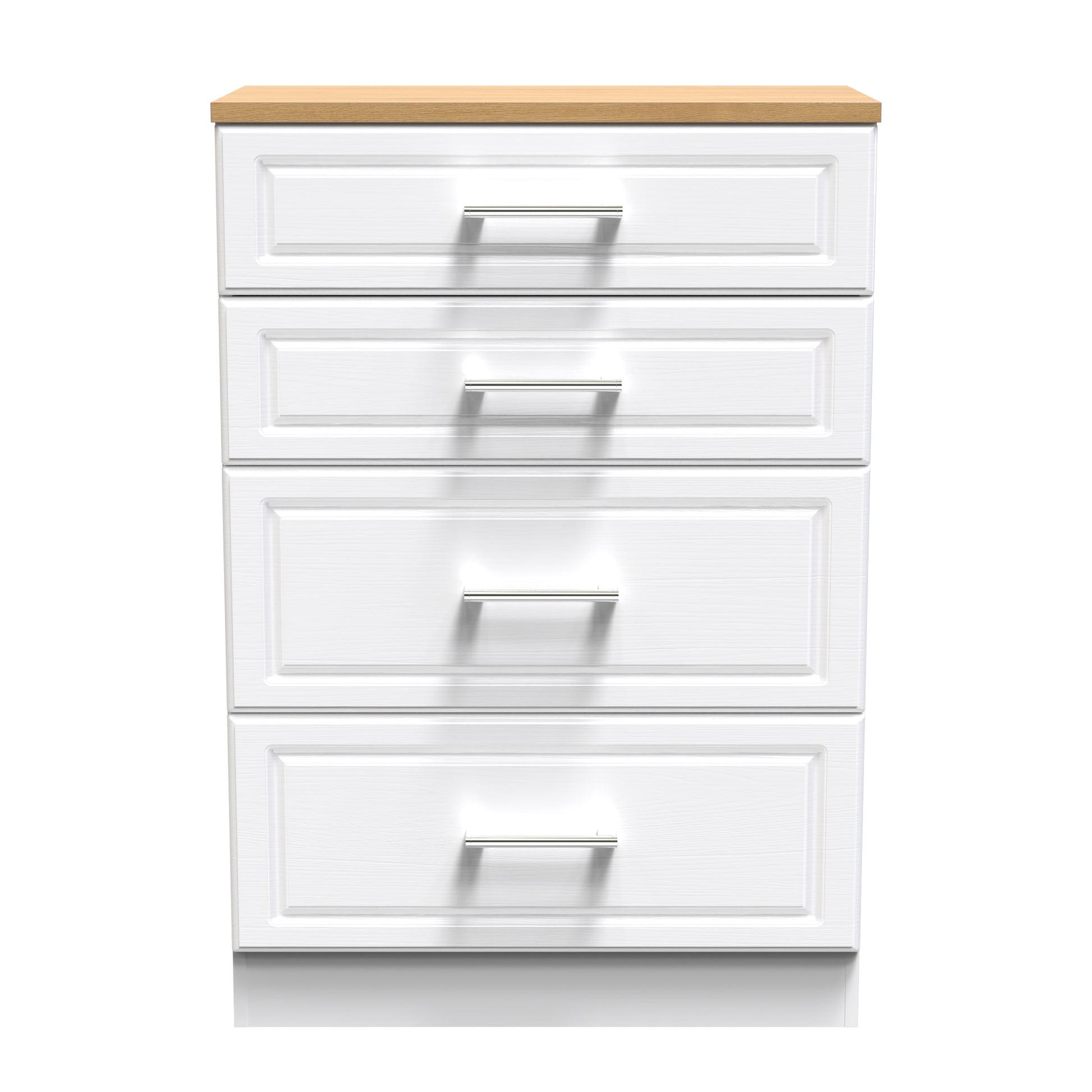 Kent Tall Chest of Drawers White & Oak 4 Drawers 108cm
