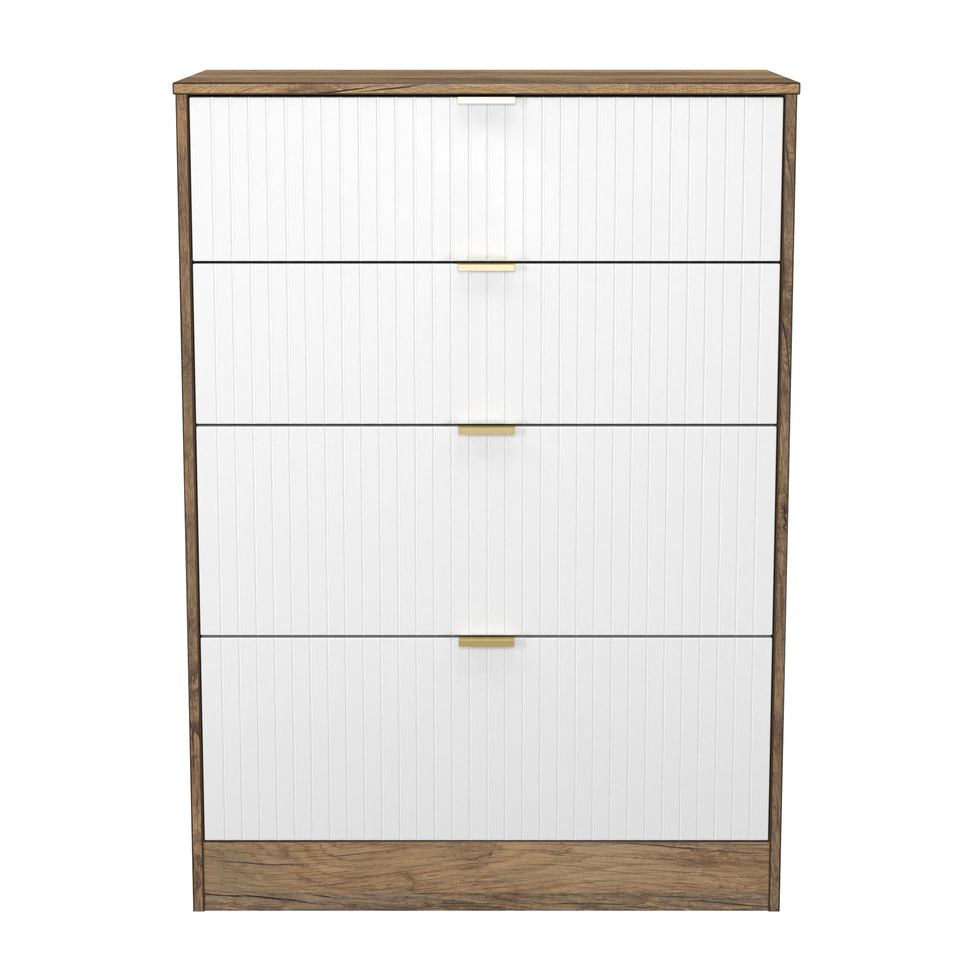 Nashville F Tall Chest of Drawers White & Vintage Oak 4 Drawers 77cm