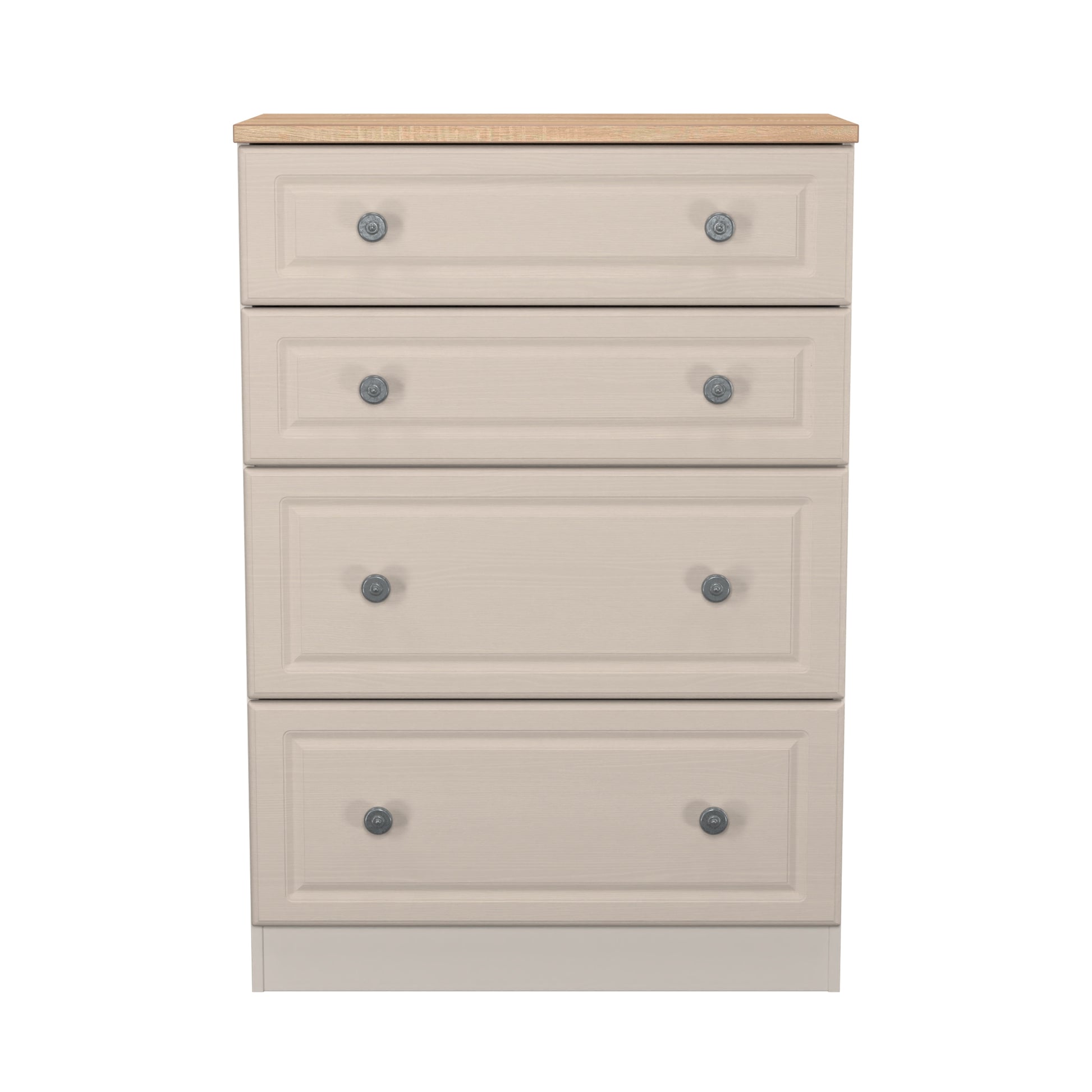 This deep 4 drawer chest of drawers is practical and stylish. Perfect for any home as a free standing storage unit. This classic range uses traditional edge finishes and wood effect tops, to create a range of classic looking furniture pieces. Contrasting finishes create the tonal variations seen here with brushed steel handle mounted on wood grained fronts. All our furniture is made to order in the United Kingdom, to the highest quality. It is delivered within 10 working days direct to your location of choice by one of our two man delivery teams, and comes fully assembled - Please Note that any handles or legs may be removed durning transit to avoid the risk of damage. Part of the Norfolk Collection.