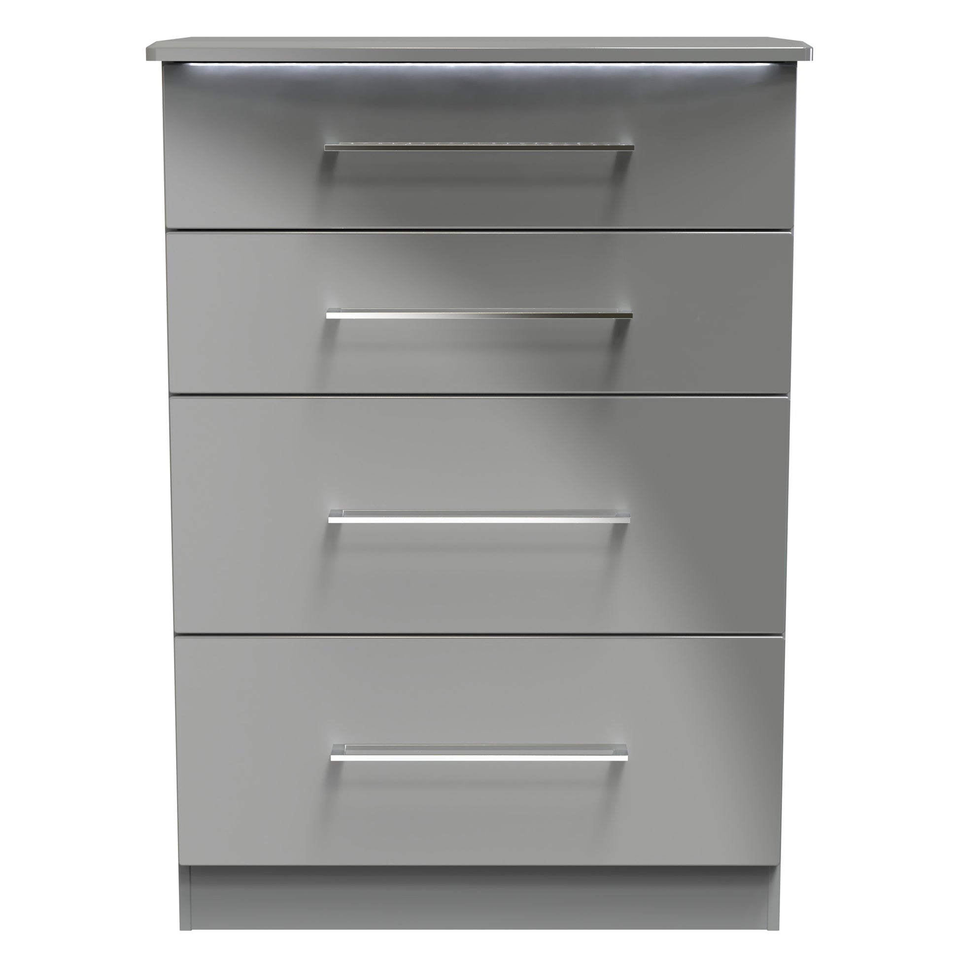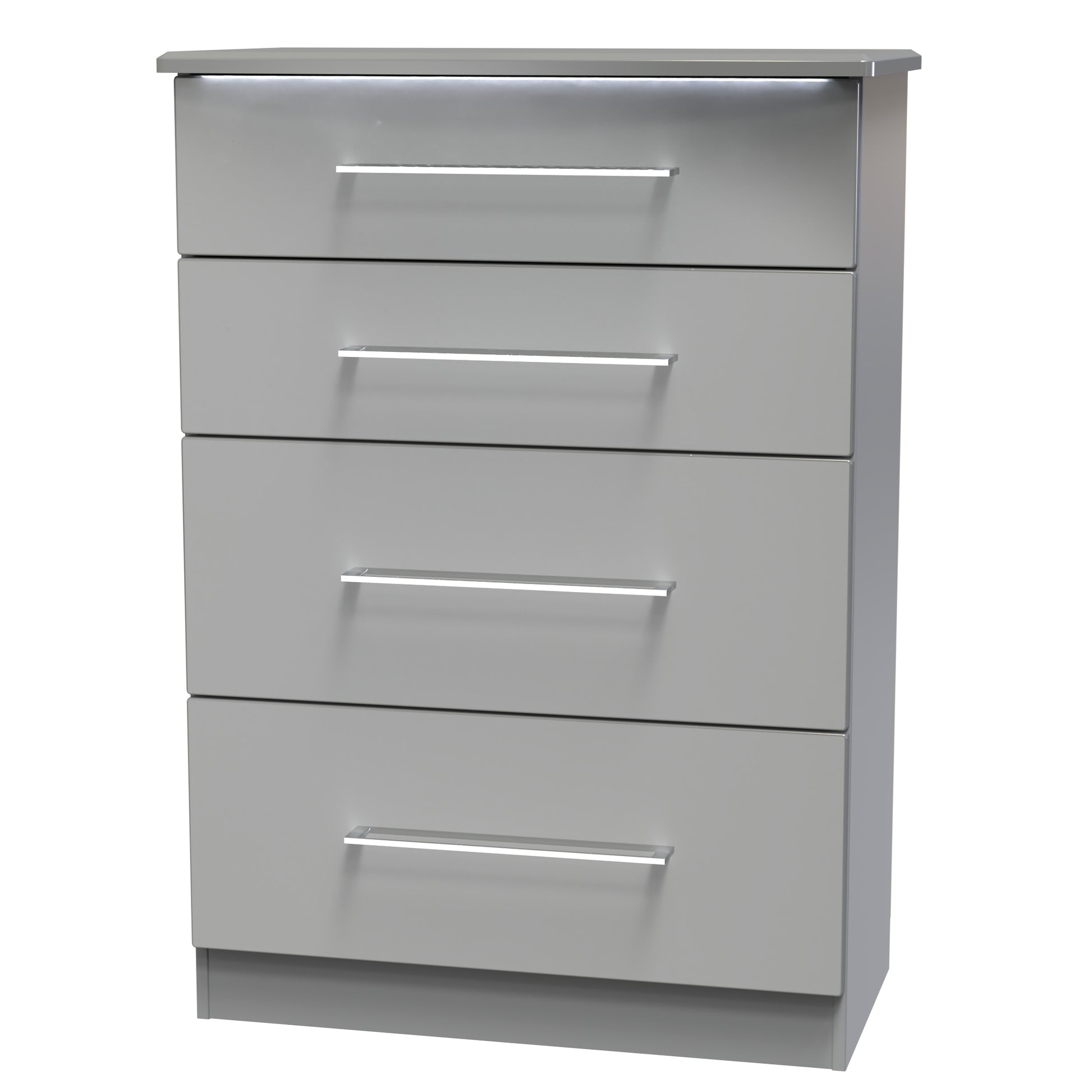 This deep 4 drawer chest of drawers is practical and stylish. Perfect for any home as a free standing storage unit. Light up your bedroom with the shiny style of this stunning range. A dazzling range of ready-assembled bedroom furniture featuring white or grey matt bodies and gloss finish doors/drawer fronts. With built-in lighting which illuminates the contents – making everything much easier to find, even in the dark. All our furniture is made to order in the United Kingdom, to the highest quality. It is delivered within 10 working days direct to your location of choice by one of our two man delivery teams, and comes fully assembled - Please Note that any handles or legs may be removed durning transit to avoid the risk of damage. Part of the Paris Collection.