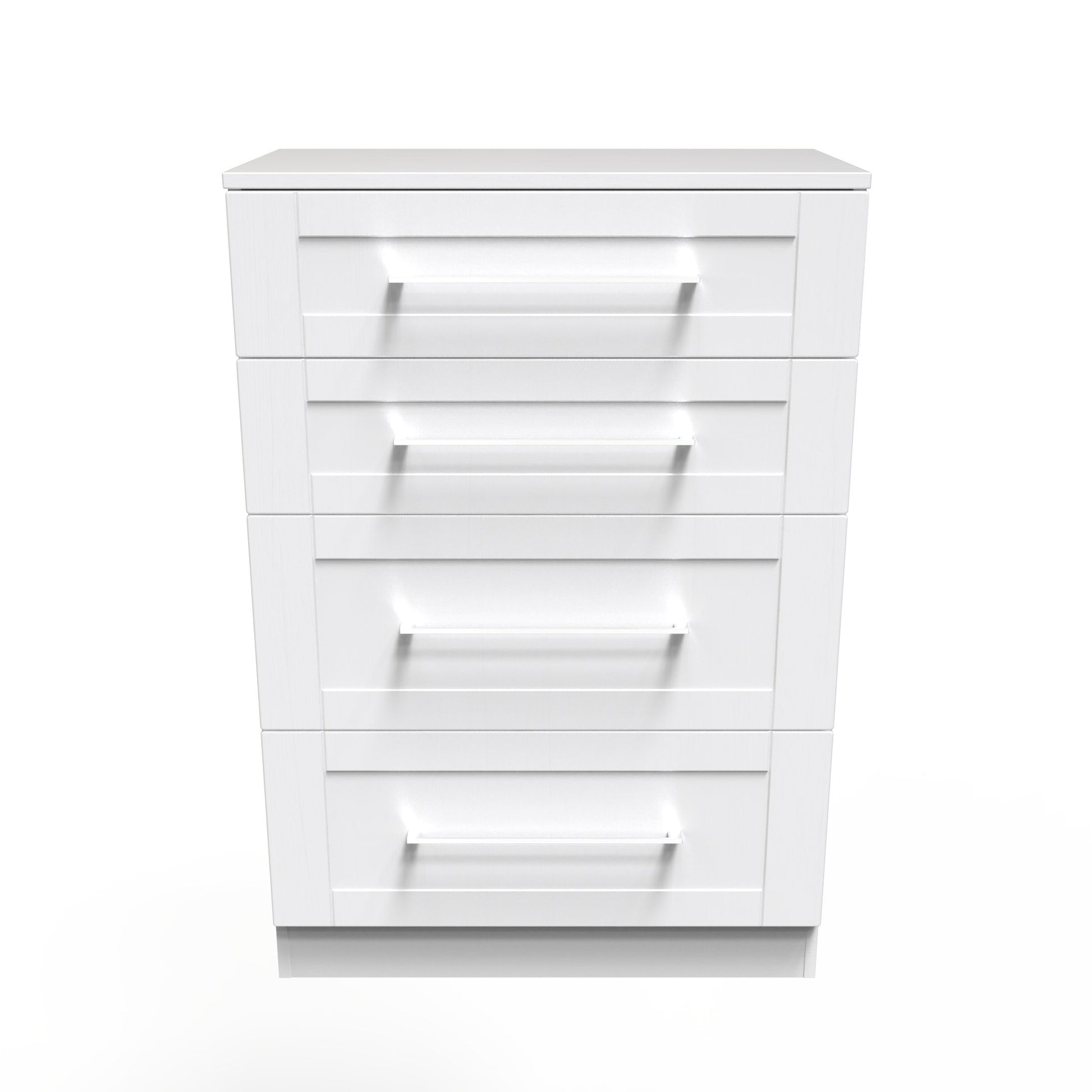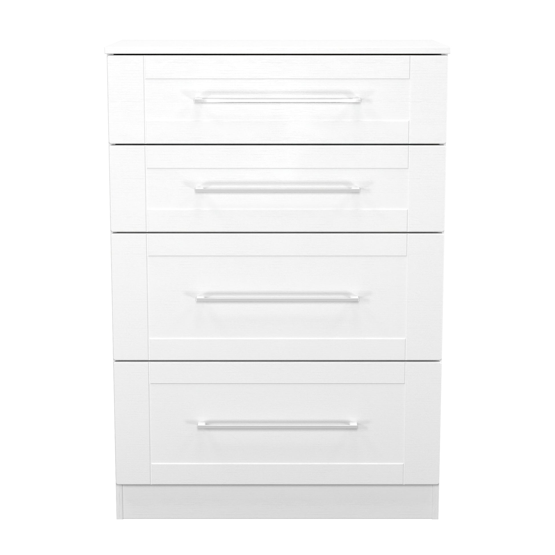 York Tall Chest of Drawers White 4 Drawers 74cm
