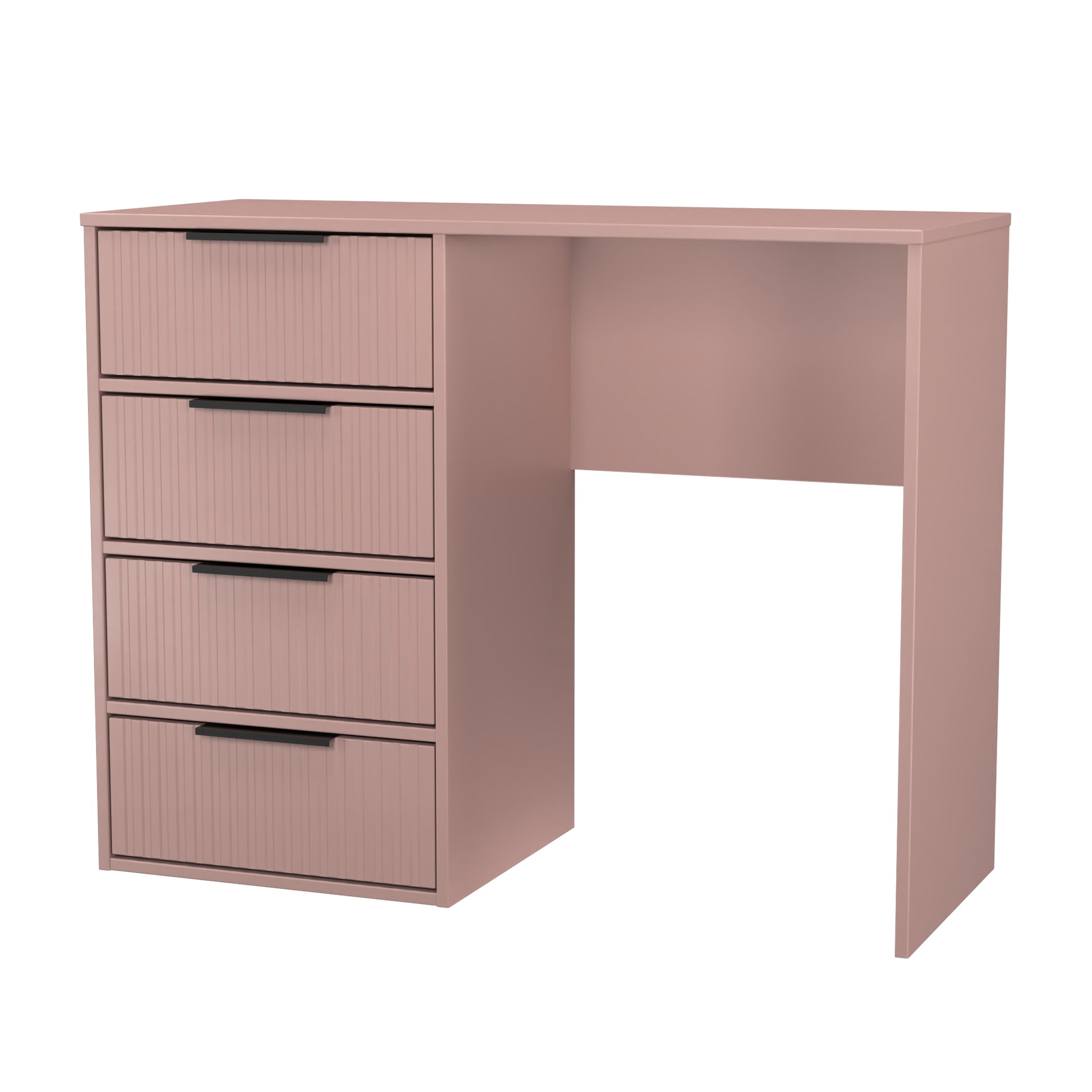 This 4 Drawer Vanity/Desk is equally at home in the bedroom or the office. A new stand out range, with its new deep cut "fluted" grove patten of the drawer and door fronts. Featuring black metal handles and black sleigh legs. A striking and individual range that is perfect for the modern home. All our furniture is made to order in the United Kingdom, to the highest quality using responsibly sourced materials. It is delivered within 10 working days direct to your location of choice by one of our two man delivery teams, and comes fully assembled (although items with legs will have those legs removed during transit to avoid damage). Part of the Fluted Collection.