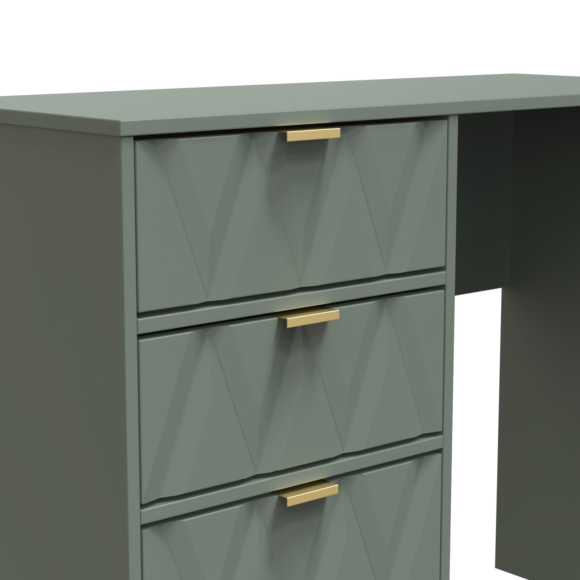 This 4 Drawer Vanity/Desk is equally at home in the bedroom or the office. Say hello to contemporary cool with this modern range, with distinctive patterned drawers and a variety of colour options available to compliment any interior design. Gold metal handles and sturdy hairpin legs complete the storage solution. All our furniture is made to order in the United Kingdom, to the highest quality. It is delivered within 10 working days direct to your location of choice by one of our two man delivery teams, and comes fully assembled (although legs may be removed to prevent damage in transit). Part of the Diamond Collection.