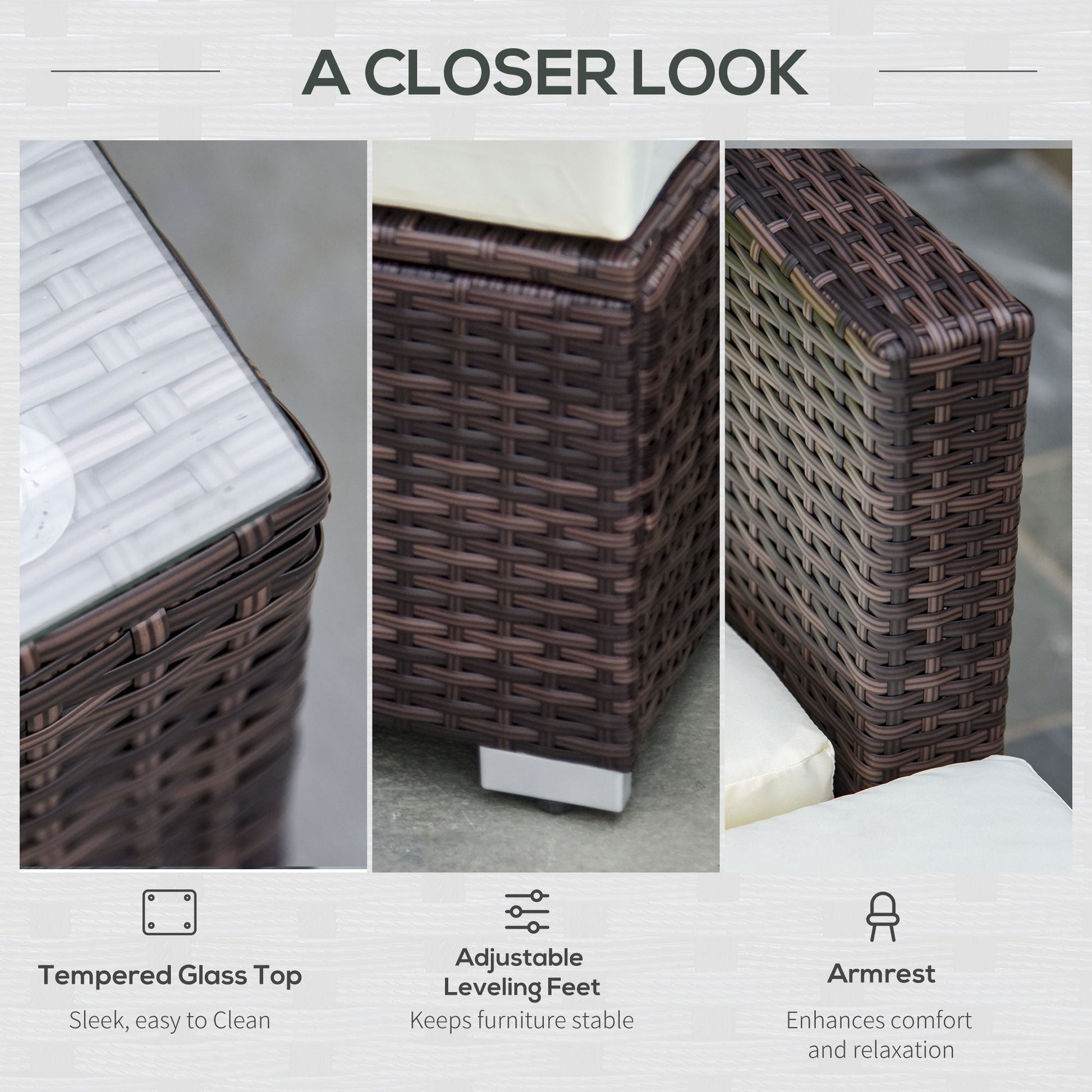 Brighten your backyard with Outsunny 5-Piece cushioned garden rattan wicker sofa sectional patio furniture sofa set and make the outdoors just as inviting as your indoors. Oftentimes, due to uncomfortable seating or simply a lack of furniture, many outdoor environments go underused or ignored completely. Change all that with a simple, in one of our design garden rattan furniture set. Decorative and functional, the rattan furniture set creates an inviting setting you'll want to use for years.