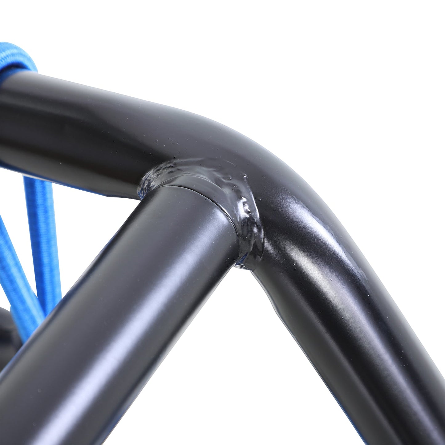 - Thick bouncing mat is safely connected to the frame via bungee cords