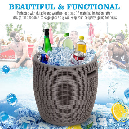 Never be stuck for a cold and refreshing drink outside again, all thanks to this outdoor cooler from Outsunny. Made from rigid and hardwearing plastic, it is covered in rattan-weave imitation, allowing it to work alongside all your other rattan furniture for a more cohesive look outdoors. Large and round, measuring ?42.5 x 44cm and with a 10L capacity, there is plenty of room to store and cool lots of drinks, with two handles on the sides making it easy to move around. It’s finished with a drainage plug to empty water easily, as well as a lid to stop the ice melting too fast. The perfect partner to your outdoor BBQs, pool parties and Summer gatherings.