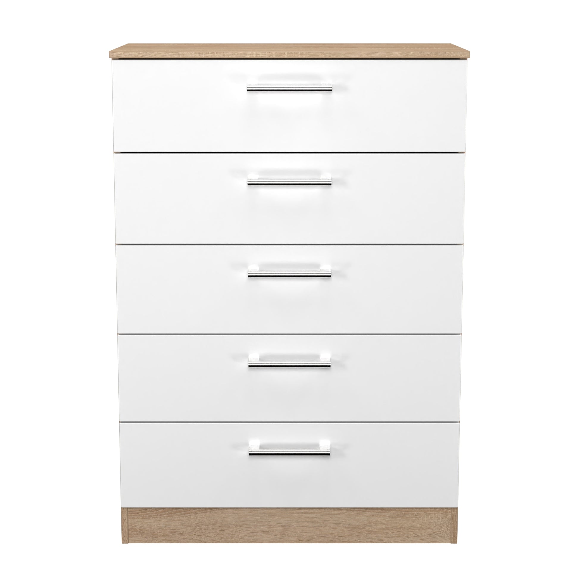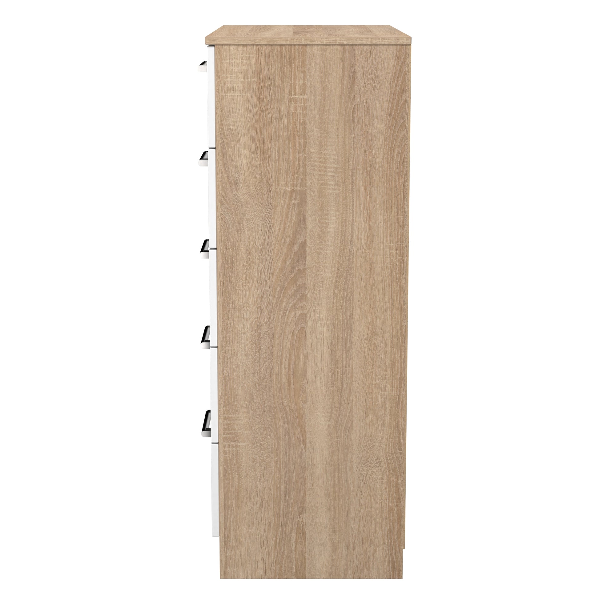 Devon Tall Chest of Drawers White & Oak 5 Drawers 108cm