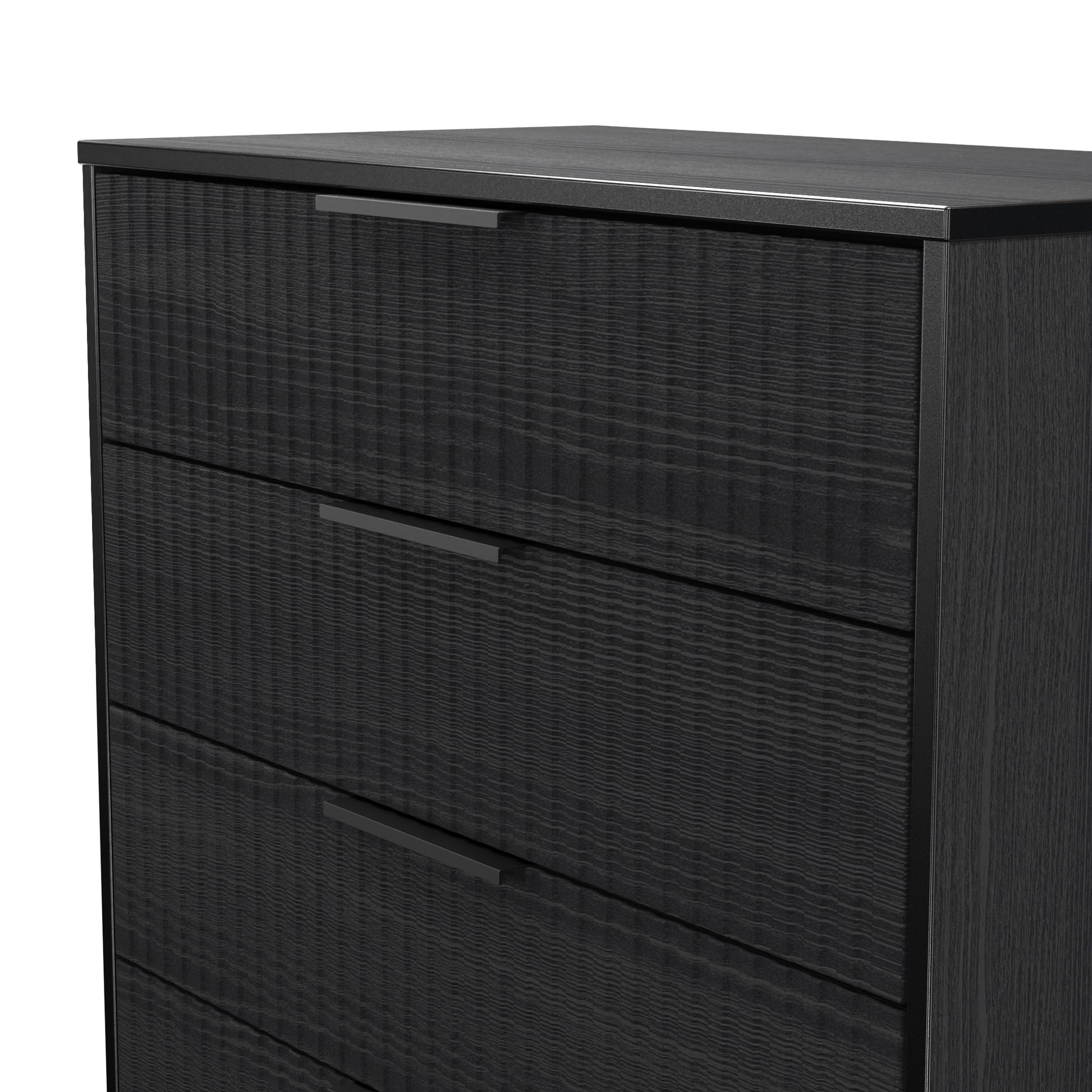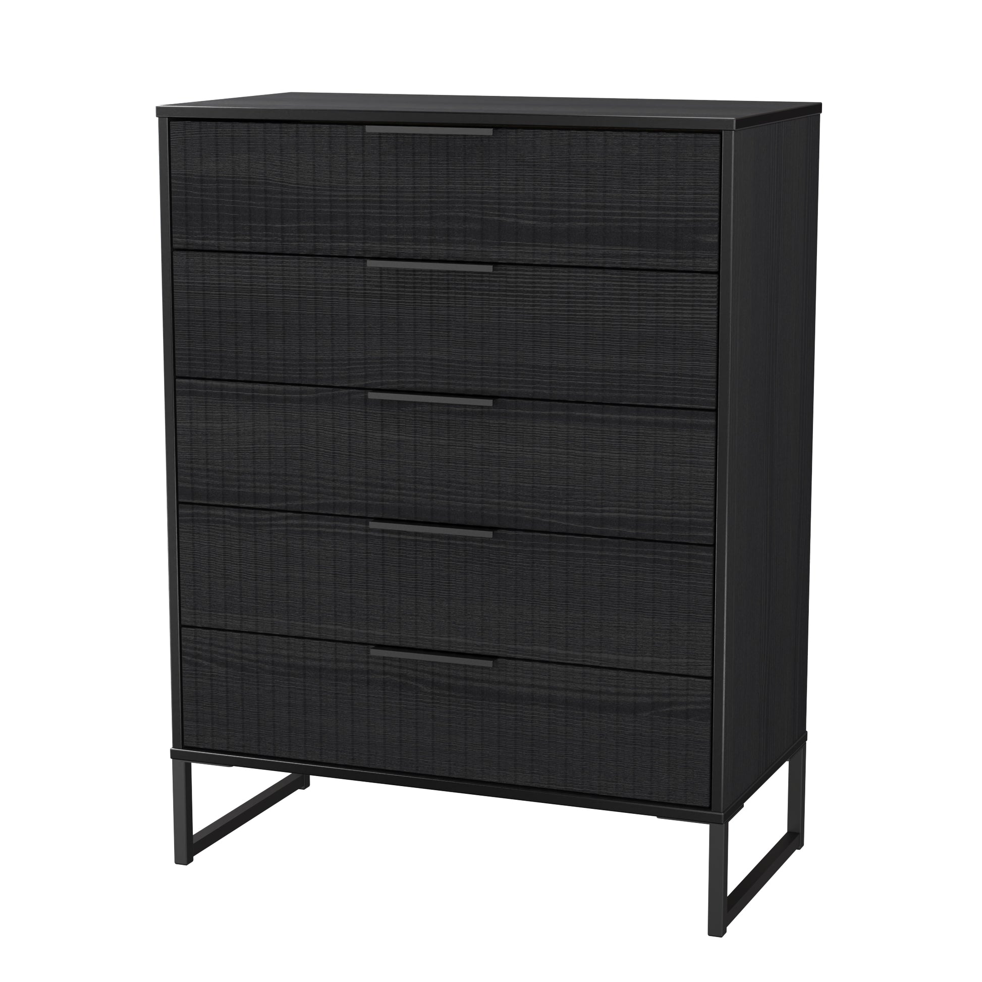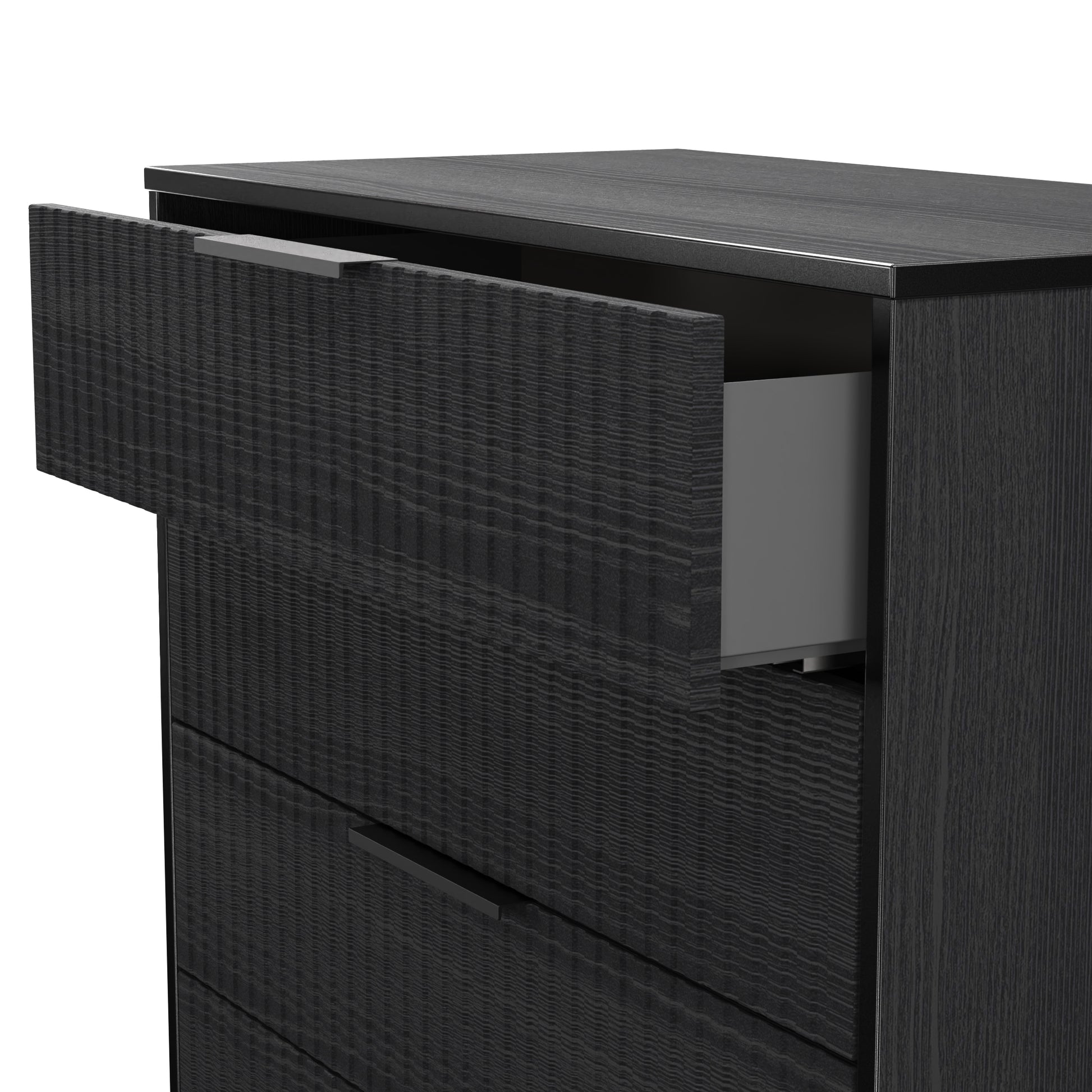 Fluted Tall Chest of Drawers Black 5 Drawers 109cm