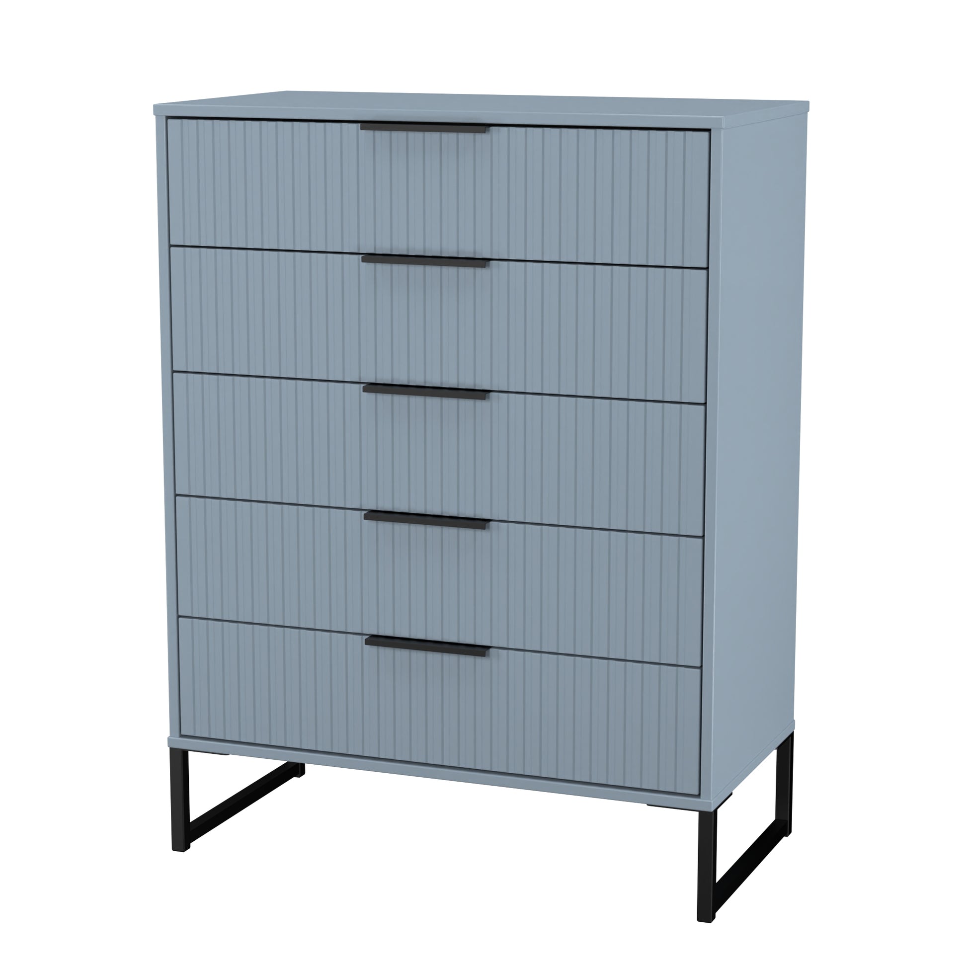 Fluted Tall Chest of Drawers Light Blue 5 Drawers 109cm