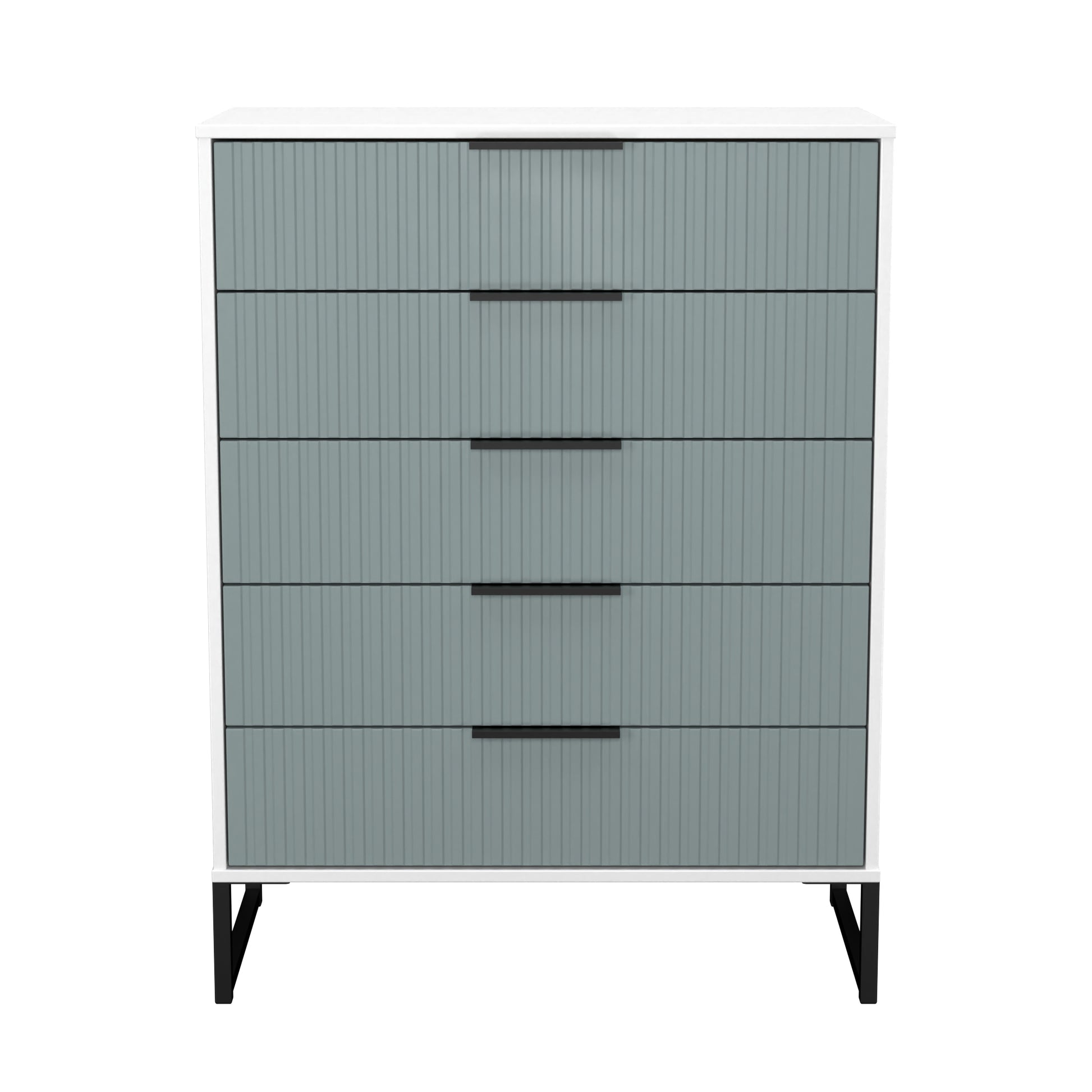 Fluted Tall Chest of Drawers Teal & White 5 Drawers 109cm