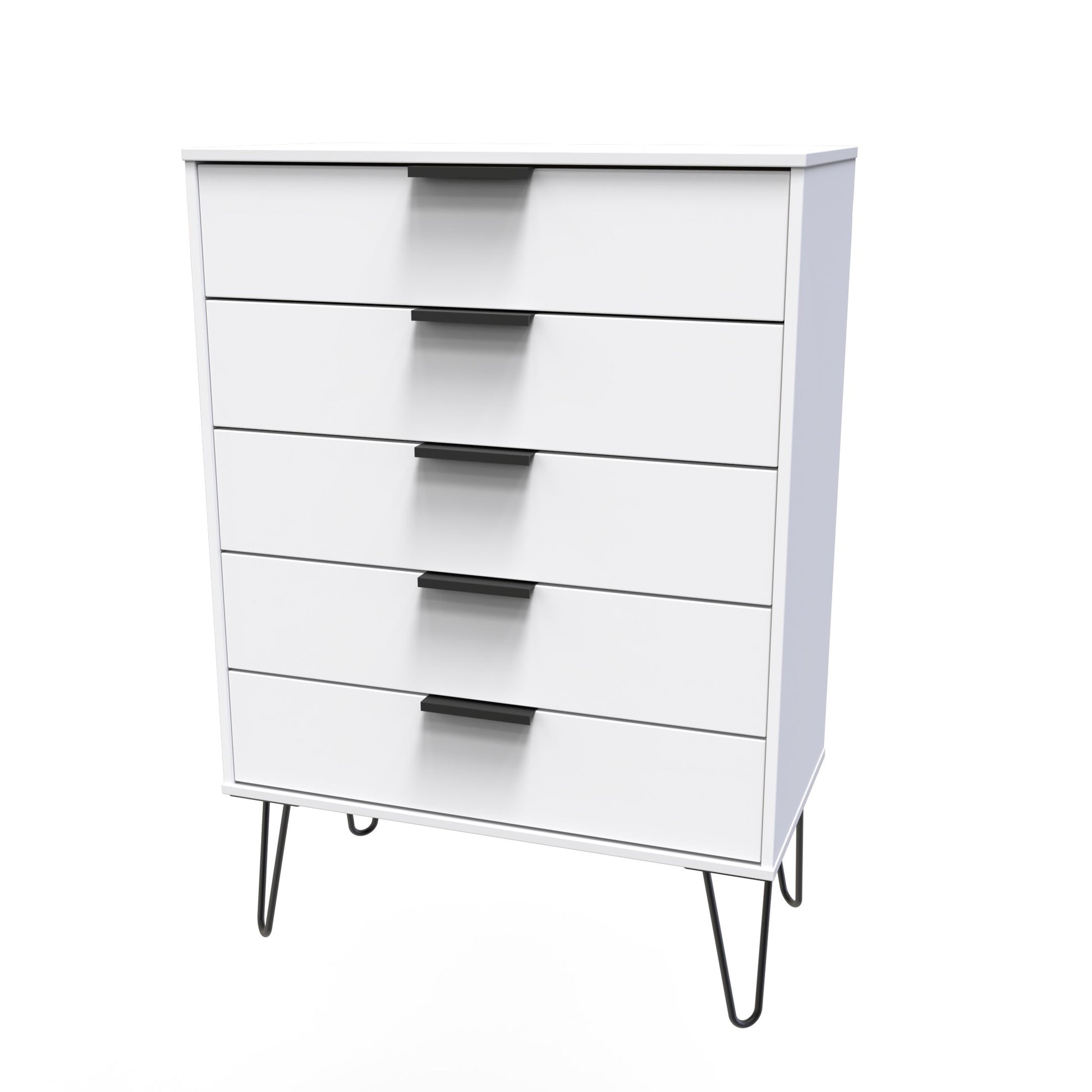 Hong Kong C Tall Chest of Drawers White 5 Drawers 109cm