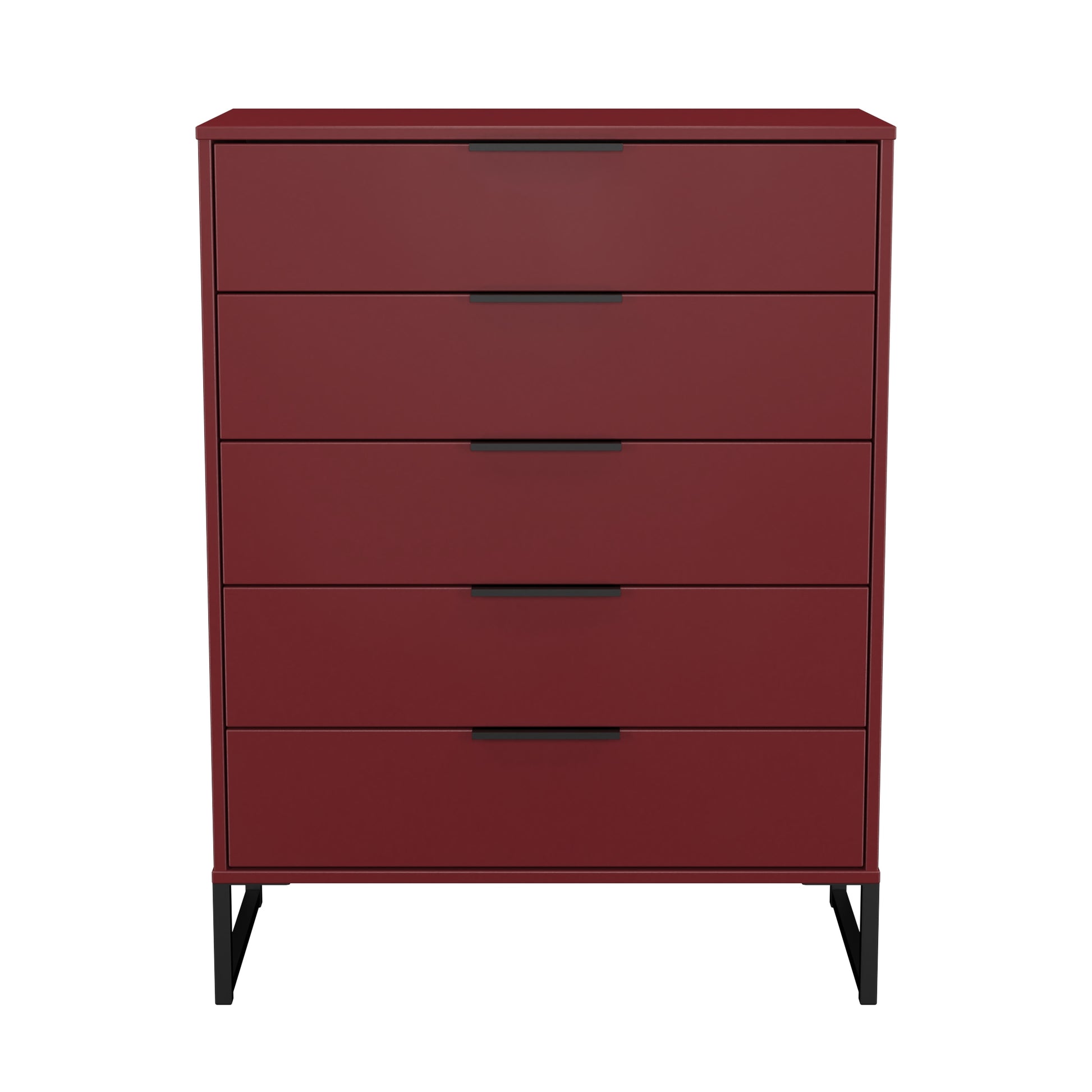 Hong Kong G Tall Chest of Drawers Red 5 Drawers 109cm