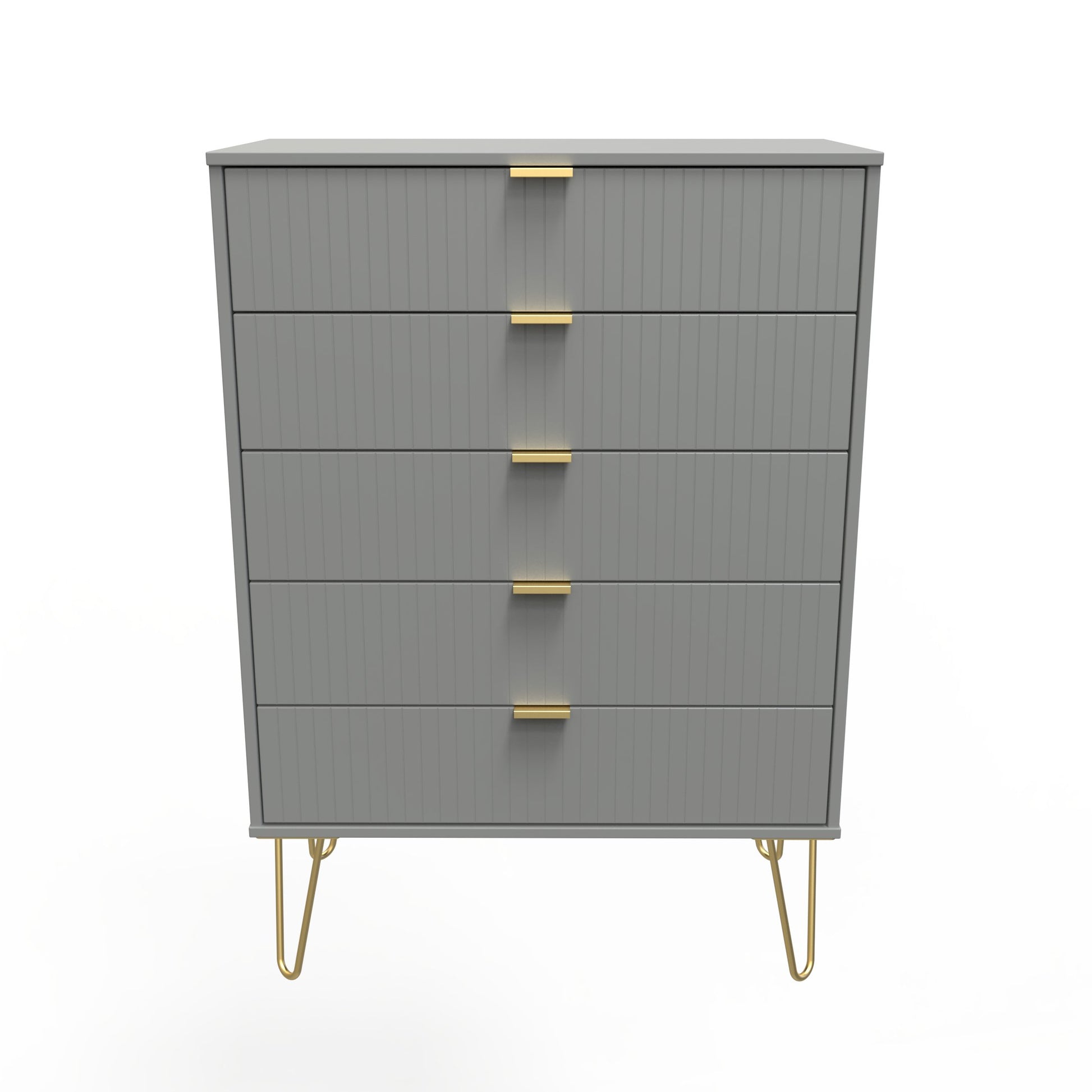 Linear Tall Chest of Drawers Grey 5 Drawers 109cm