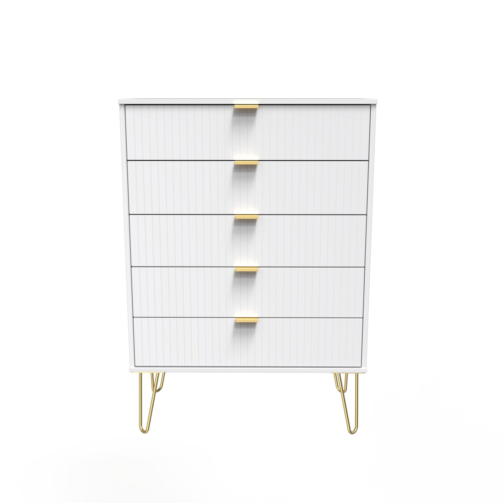 Linear Tall Chest of Drawers White 5 Drawers 109cm