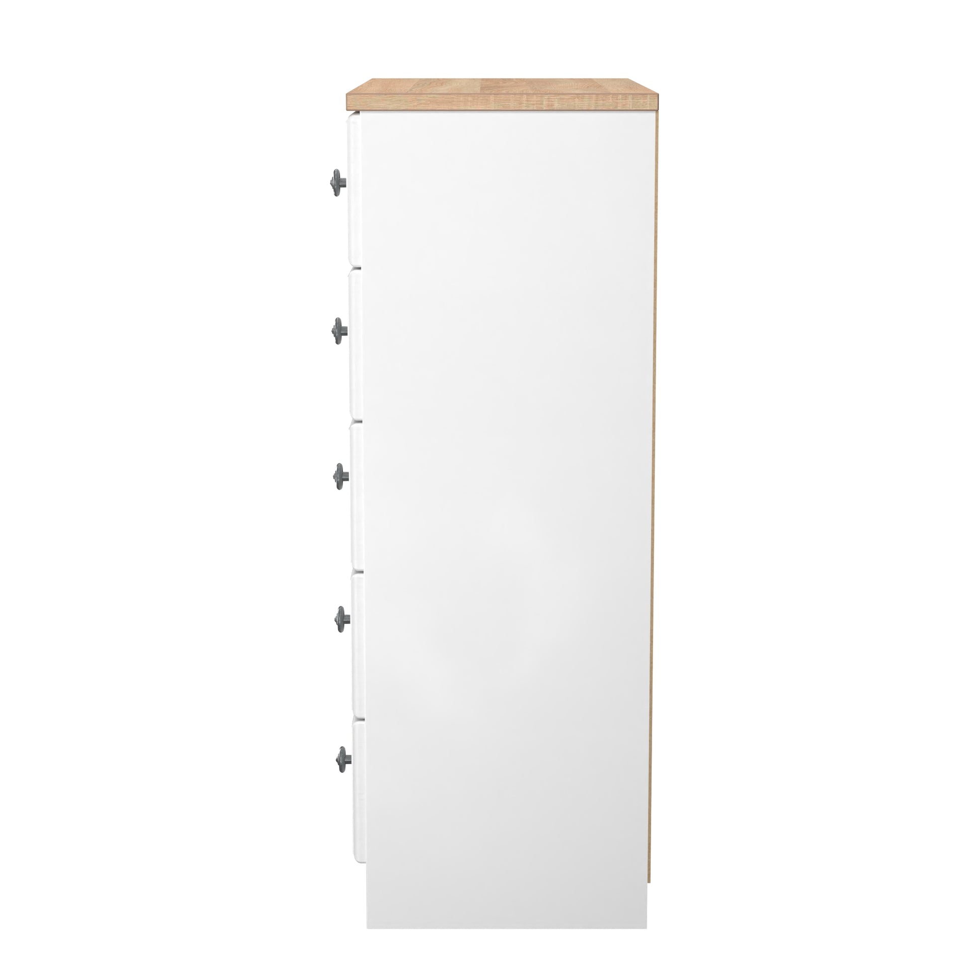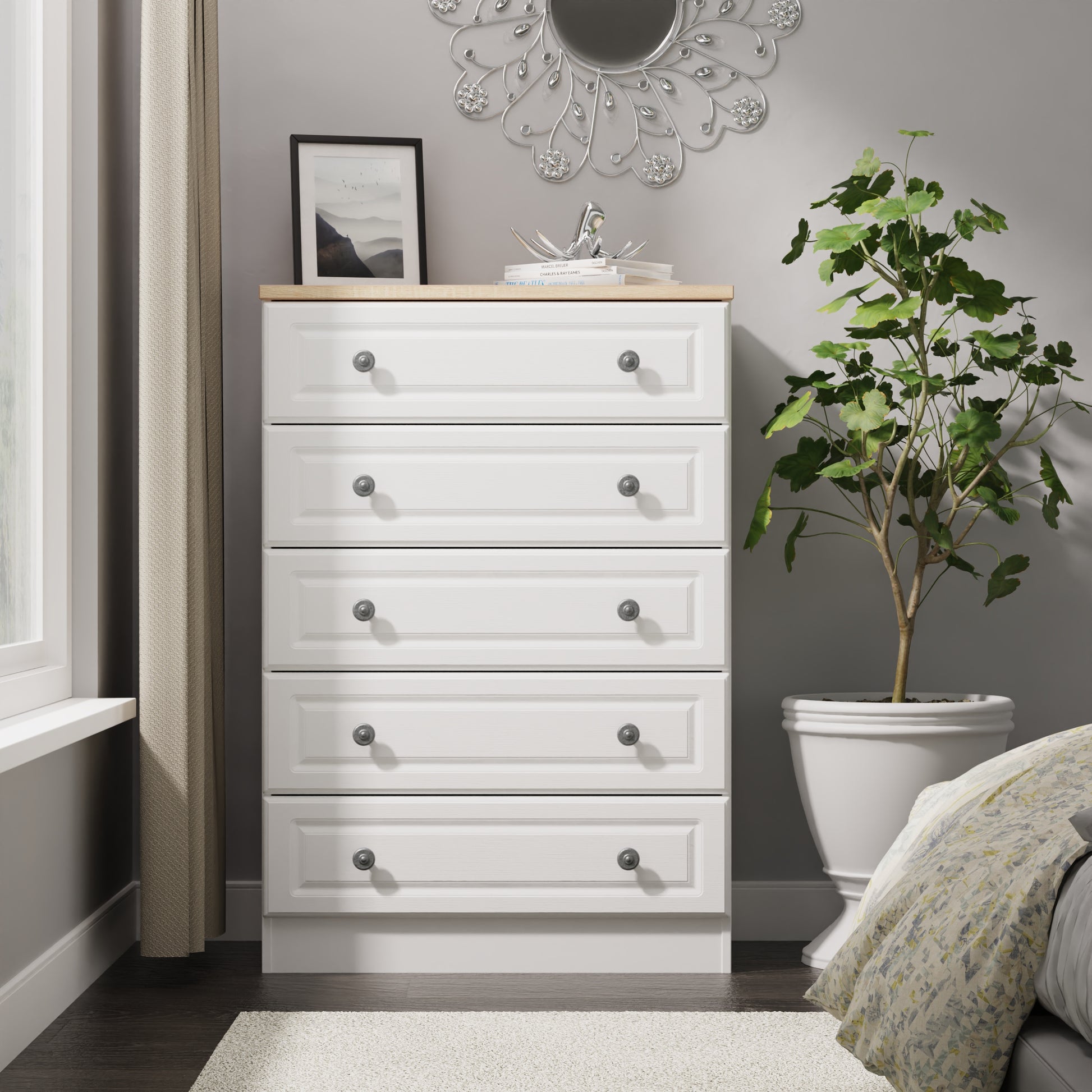 Norfolk Tall Chest of Drawers White & Light Oak 5 Drawers 74cm